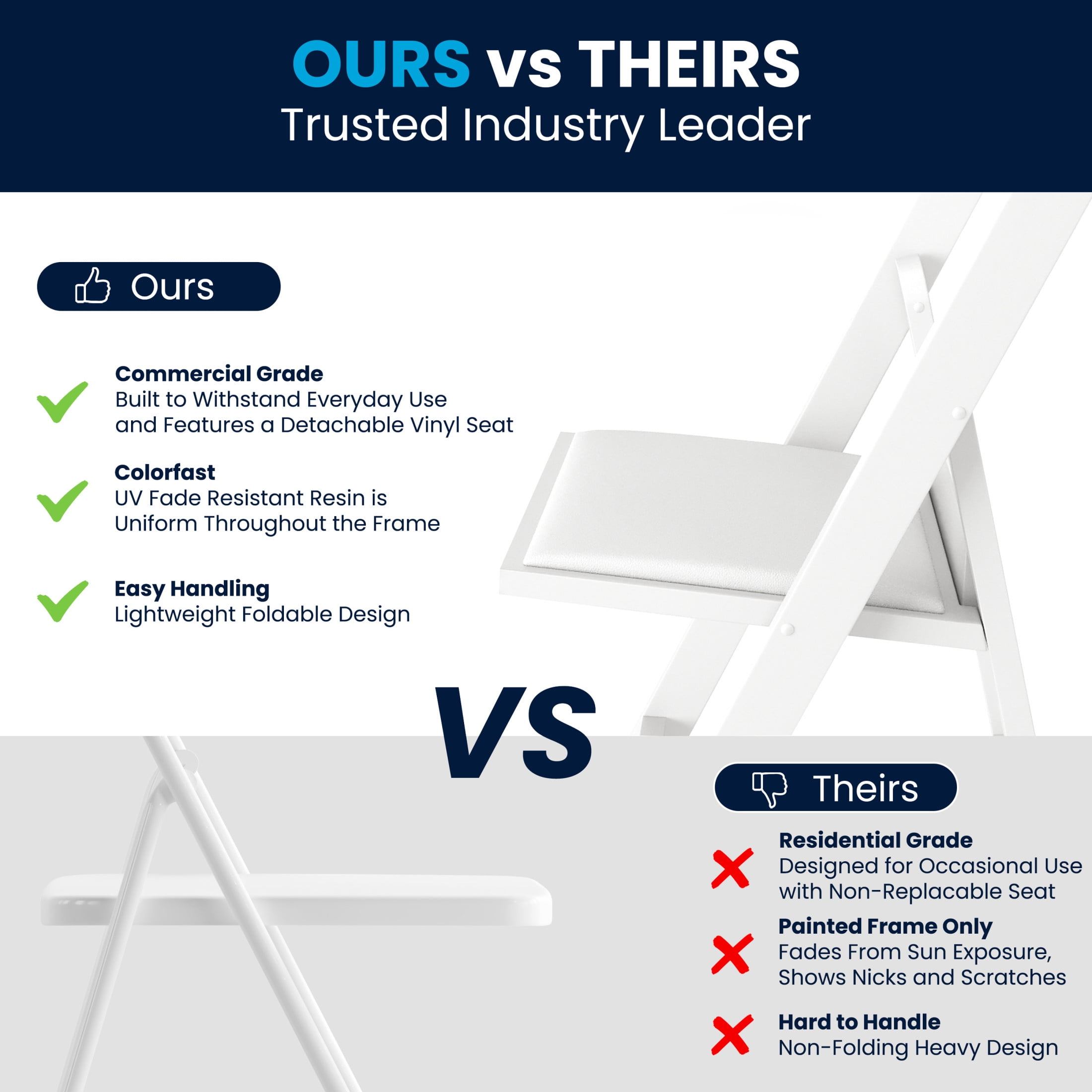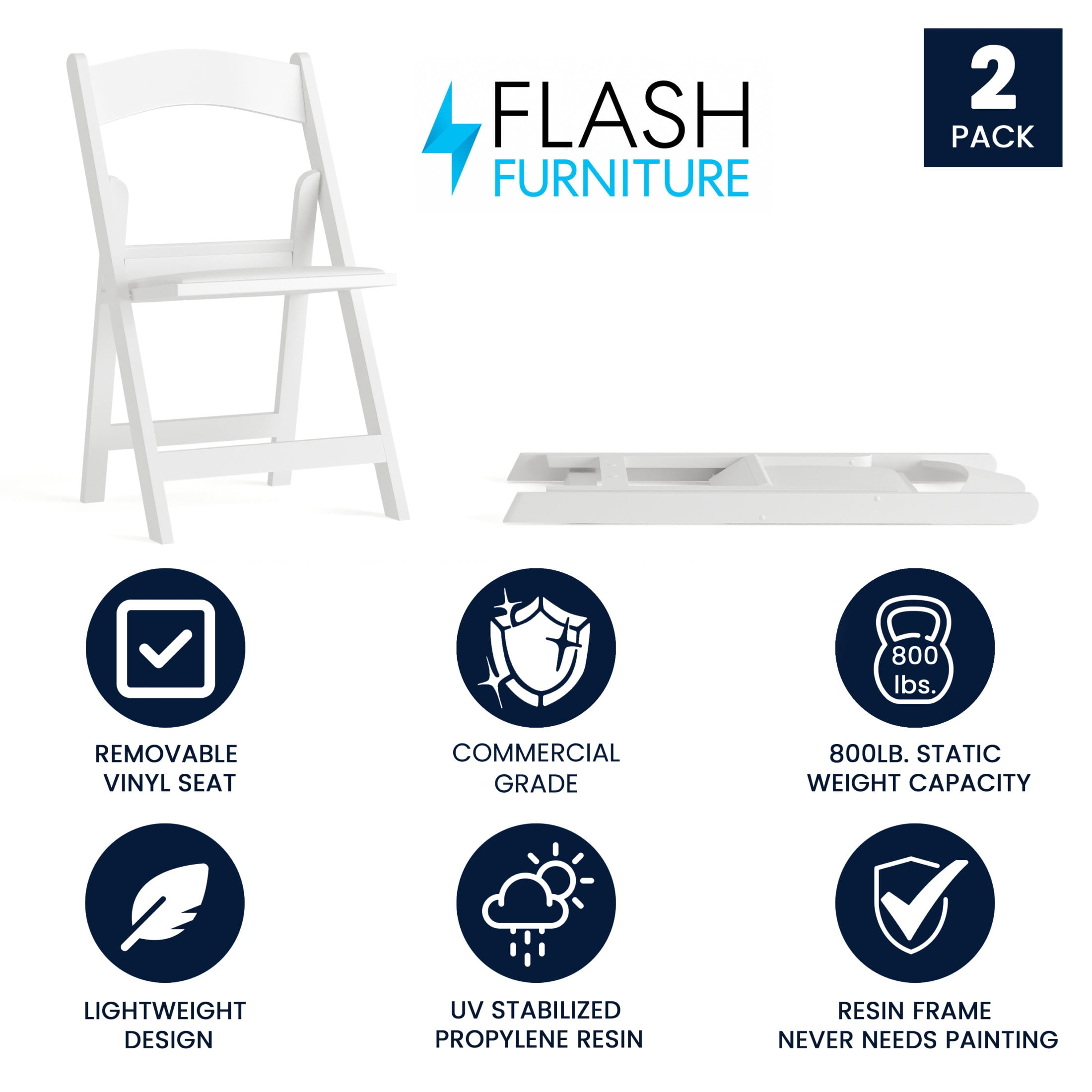 Flash Furniture Hercules Series Adult Comfortable Resin Folding Event Chairs, Set of 2, White Great for catering events, get-togethers, school functions, business meetings, and more Upscale design makes chairs a great option for more formal occasions such as weddings Comfortable waterproof vinyl seats are replaceable as needed Lightweight, foldable, and stackable design allows for easy portability and compact storage Protective non-marring floor glides Constructed from UV-stabilized resin and other premium materials No assembly required Overall Size: 17.5″W x 18″D x 30.75″H; Seat Size: 15.5″W x 13.75″D x 18.5″H; Back Size: 17.5″W x 15″H; Folded Size: 17.5″W x 2.25″D x 35″H EASY TO STORE: Each chair measures 17.5″ W x 18″ D x 30.75″ H when open and 17.5″ W x 2.25″ D x 35″ H when folded with no assembly required; chairs stack for compact storage after use