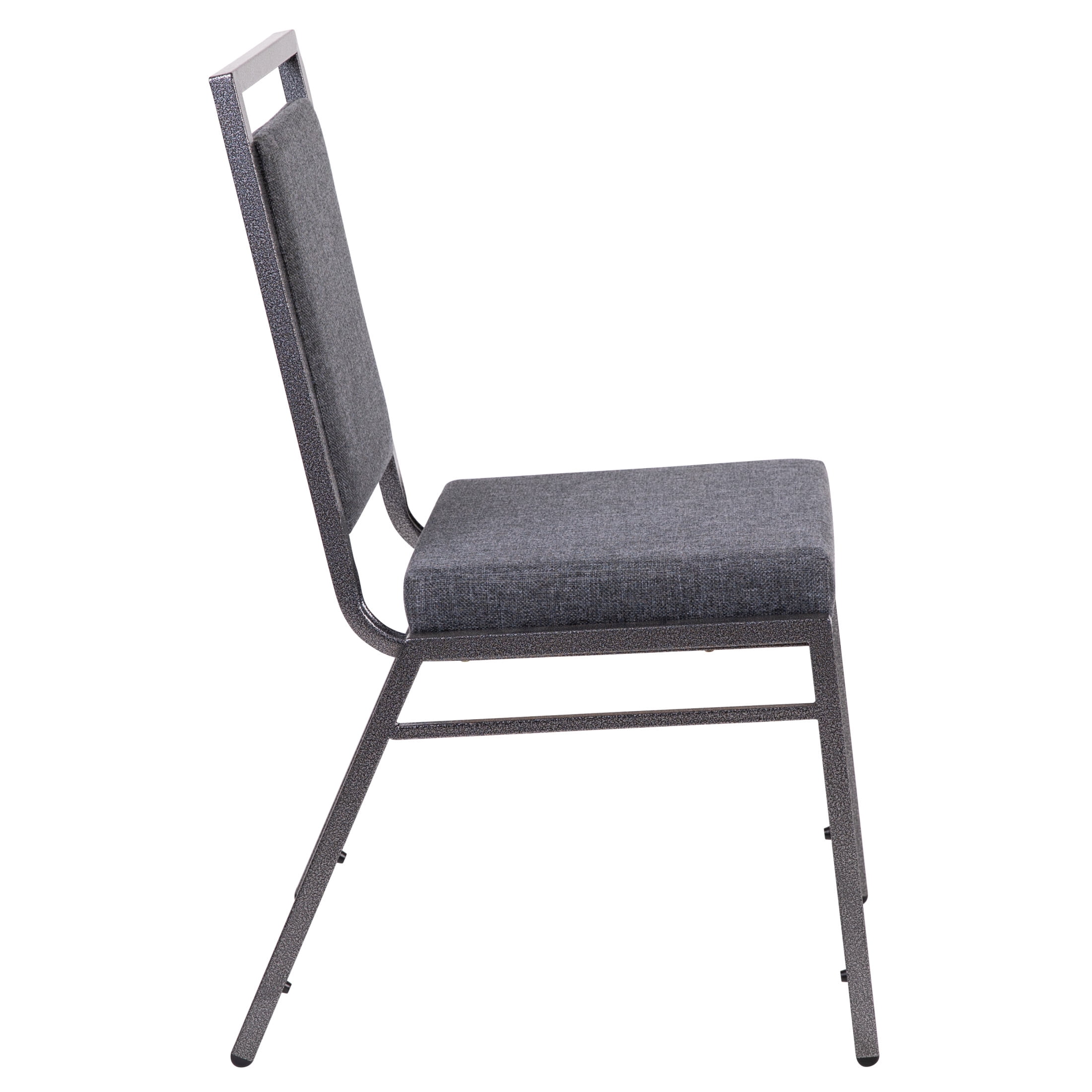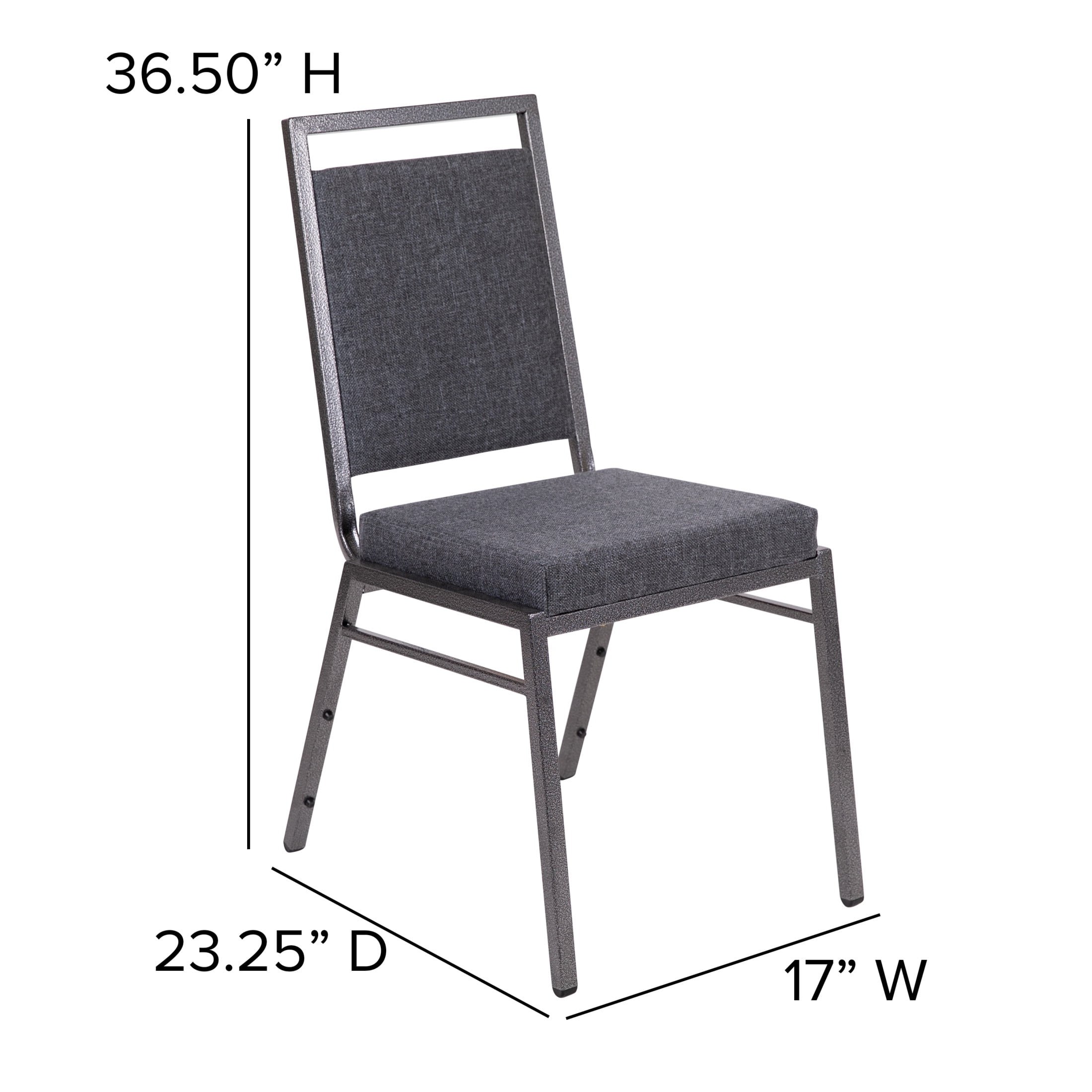 Flash Furniture Hercules Series Adult Size Square Back Stacking Banquet Chair, Dark Gray Comfortable thick cushioning with CAL 117 fire retardant foam Seat and back are covered in a soft and stylish fabric upholstery Sturdy frame with gracefully angled legs made of 16-gauge steel Double support braces reinforce the frame for maximum durability Chairs can be stacked up to 15 high for compact storage Non-marring floor glides allow you to easily move the chairs around the venue Supports up to 600 lbs. of static weight Overall Size: 17″W x 23.25″D x 36.5″H; Seat Size: 15″W x 15″D x 19″H; Back Size: 14.5″W x 19″H PRODUCT MEASUREMENTS: Overall Size: 17″W x 23.25″D x 36.5″H; Seat Size: 15″W x 15″D x 19″H; Back Size: 14.5″W x 19″H; No Assembly Required