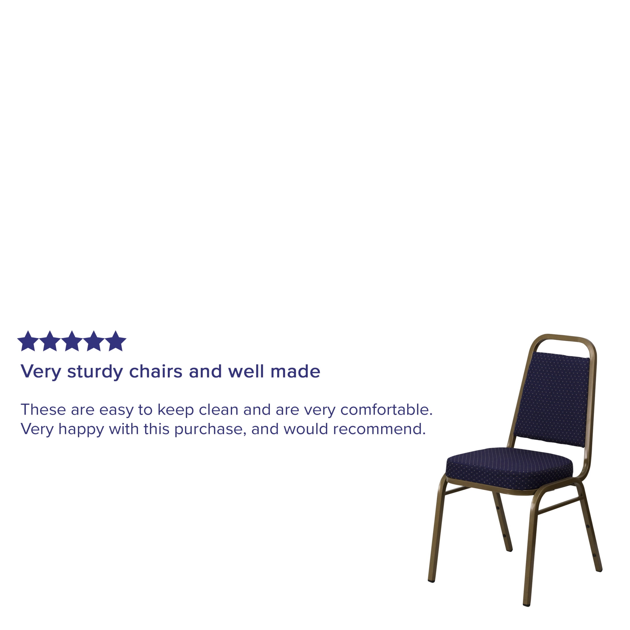 Always be ready for your next event or get-together with the Flash Furniture Hercules Series Trapezoidal Banquet Chairs. Whether you’re hosting a game night or catering event, planning weddings or business meetings, or organizing a school function, these adult size event chairs offer a reliable, on-demand seating solution for commercial or home use both. Use them as is for a standout at casual events or dress them up to make a statement at more formal events by placing a chair cover over them. The adult size chairs are cushioned with 2.5″ thick CAL 117 fire retardant foam that is covered by a durable, easy-to-clean fabric upholstery for superior comfort during long events. Built for long-lasting use, the sturdy frame with gracefully angled legs is constructed from 16-gauge steel with a powder-coated finish, and double support braces reinforce the frame for optimal strength and durability. Convenient bumper guards prevent scratches on the frame while non-marring floor glides protect your floors by sliding smoothly. Each chair can hold up to 500 pounds of static weight, and they’re stackable for easy storage in between events.