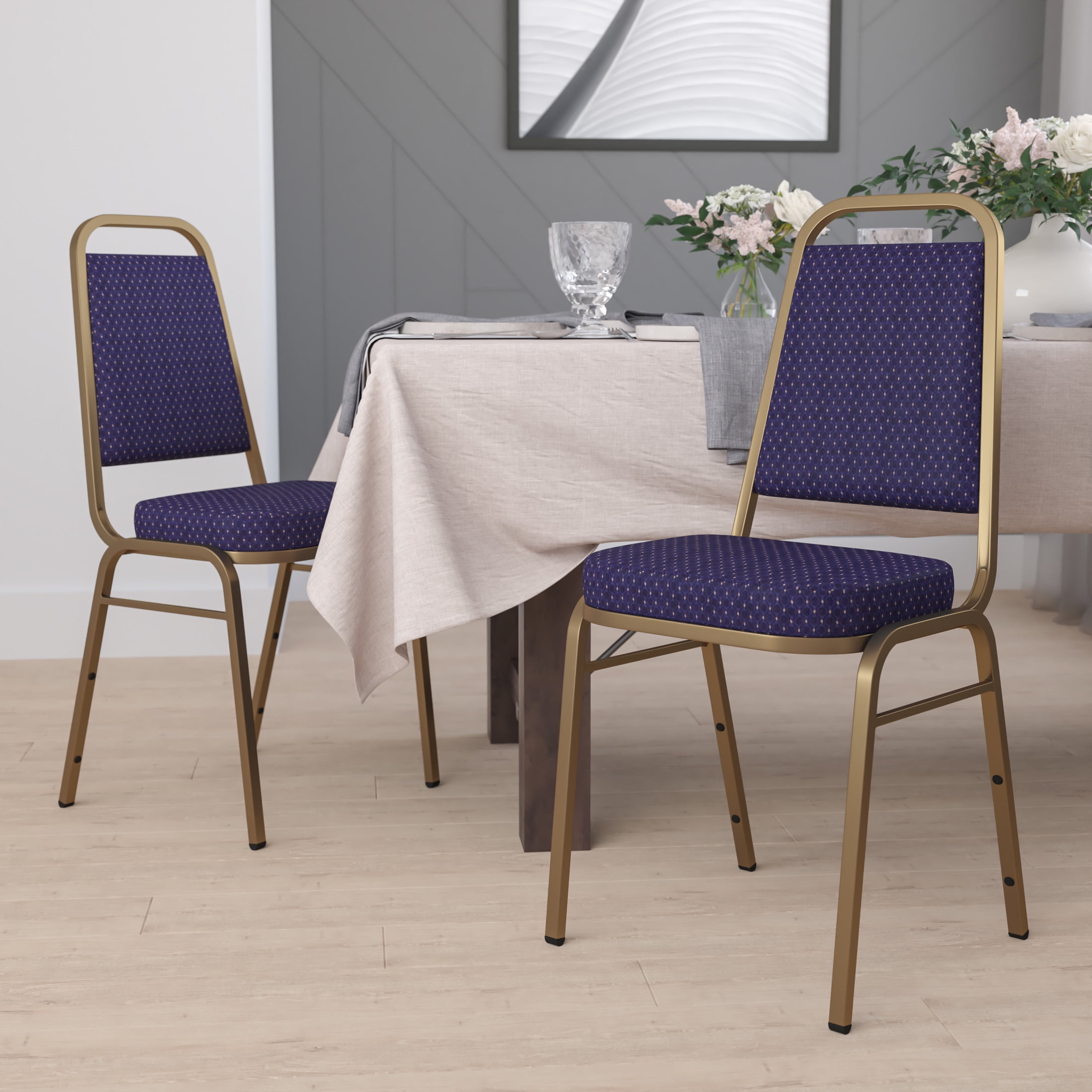 Flash Furniture Hercules Series Adult Size Trapezoidal Stacking Banquet Chairs, Set of 4, Navy Great for casual events or can be dressed up with a chair cover for formal events Cushioned with 2.5″ thick CAL 117 fire retardant foam Durable, easy-to-clean fabric upholstery cover 16-gauge steel sturdy frame with gracefully angled legs Double support braces reinforce the frame for optimal strength and durability Bumper guards and non-marrying floor glides for easy transportation and storage Supports up to 500 lbs. of static weight Overall Size: 17.5″W x 20.25″D x 36″H; Seat Size: 15.5″W x 15.75″D x 19.25″H; Back Size: 15.5″W x 14.5″H PRODUCT MEASUREMENTS: Overall Size: 17.5″W x 20.25″D x 36″H; Seat Size: 15.5″W x 15.75″D x 19.25″H; Back Size: 15.5″W x 14.5″H; No Assembly Required