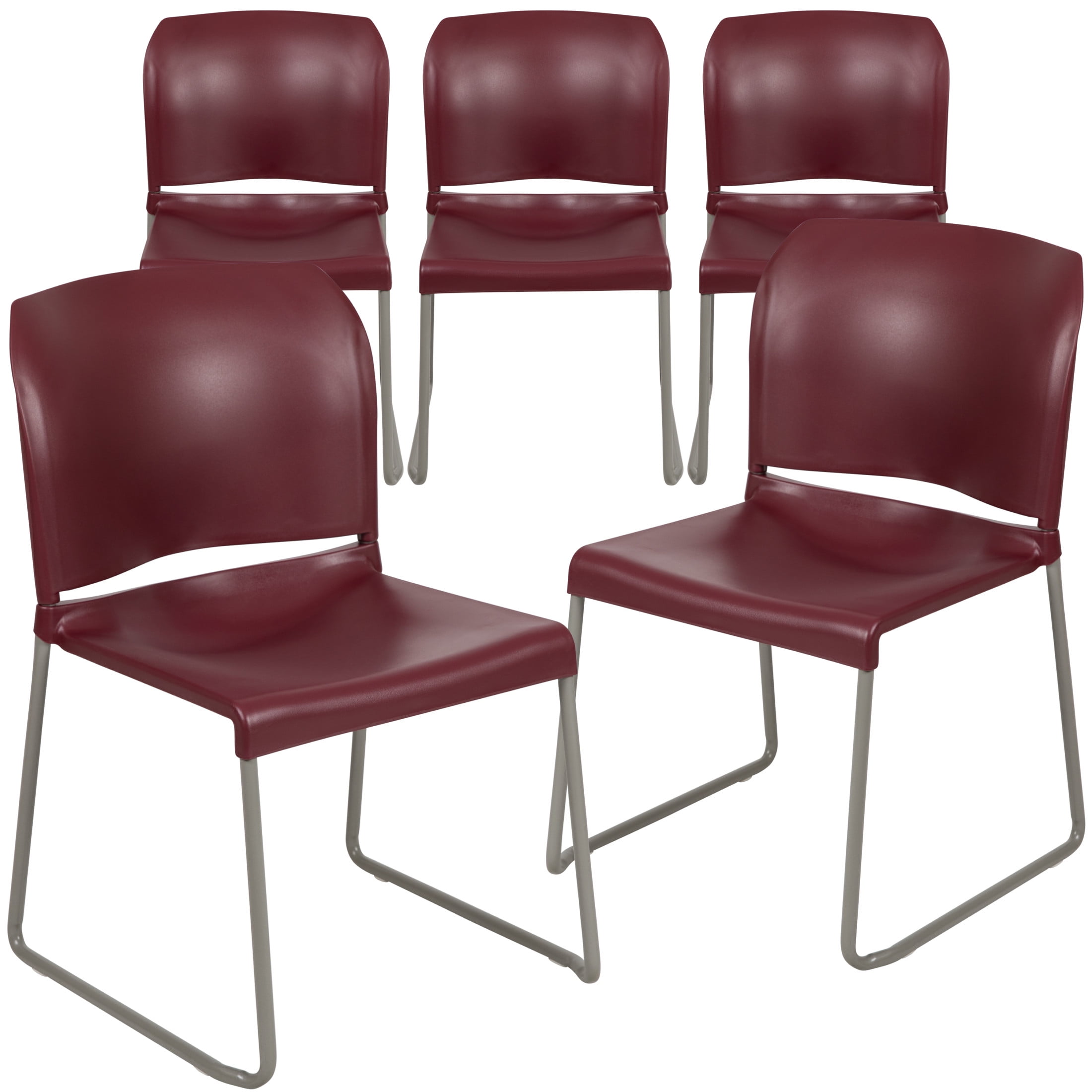 Add convenient, stylish seating just about anywhere with the Flash Furniture Hercules Series Sled Base Stack Chairs. These versatile chairs offer a comfortable and reliable seating solution that creates a welcoming atmosphere in lobbies, offices, professional cafeterias, training rooms, libraries, business centers, and other residential or commercial spaces. Designed for superior comfort, the ergonomic contoured design with a durable plastic back and seat provide optimal comfort for guests and clients, and a perforated back allows for proper air circulation. The stabilizing sled base ensures that the legs won’t snap, making this sturdy chair a great choice on carpeted floors, and plastic floor glides allow for easy movement around the venue. Constructed from heavy-duty polypropylene material, these durable adult size waiting room chairs support up to 881 pounds of static weight and withstand years of quality use. The stackable chairs stack up to 5 high for compact storage after use, and a handle cutout in the seat and back allow for easy transportation.