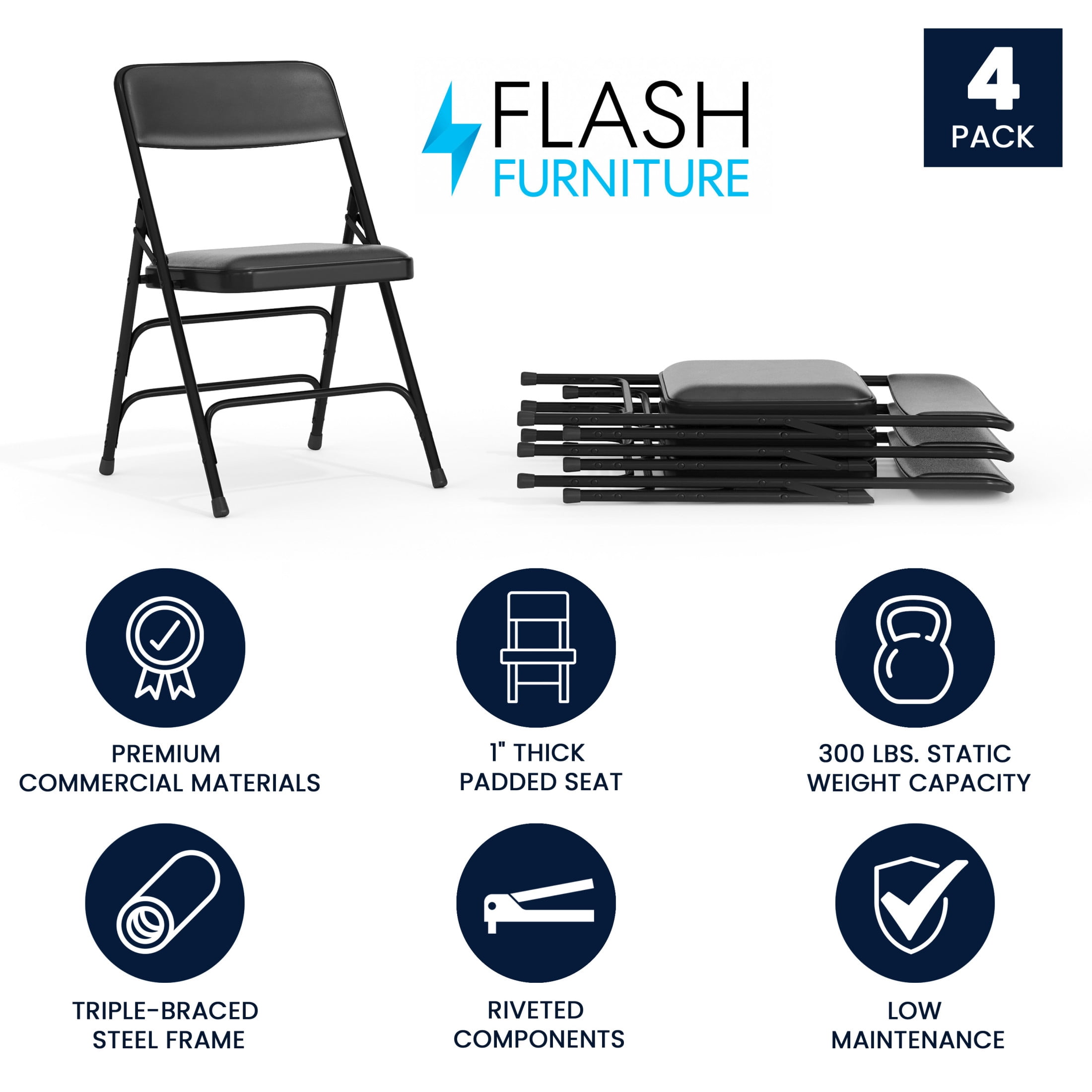 Flash Furniture Hercules Series Adult Triple Braced & Double Hinged Folding Chairs, Set of 4, Black