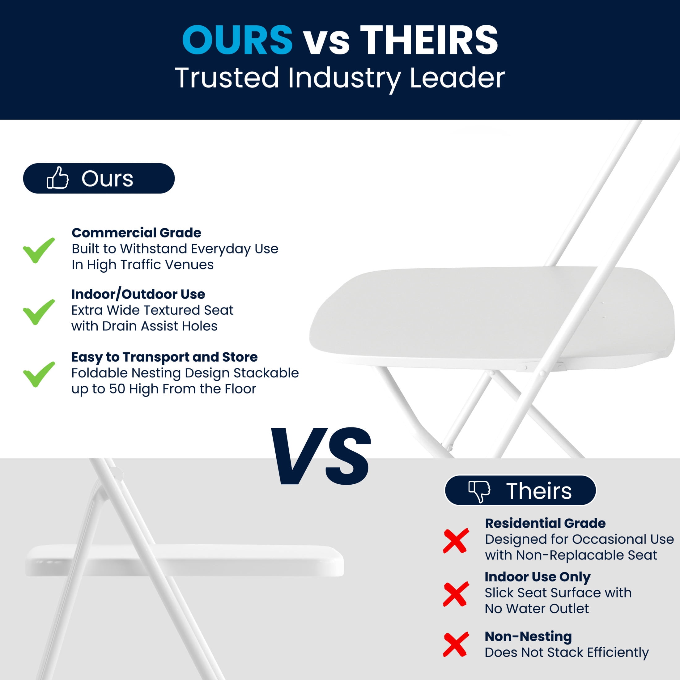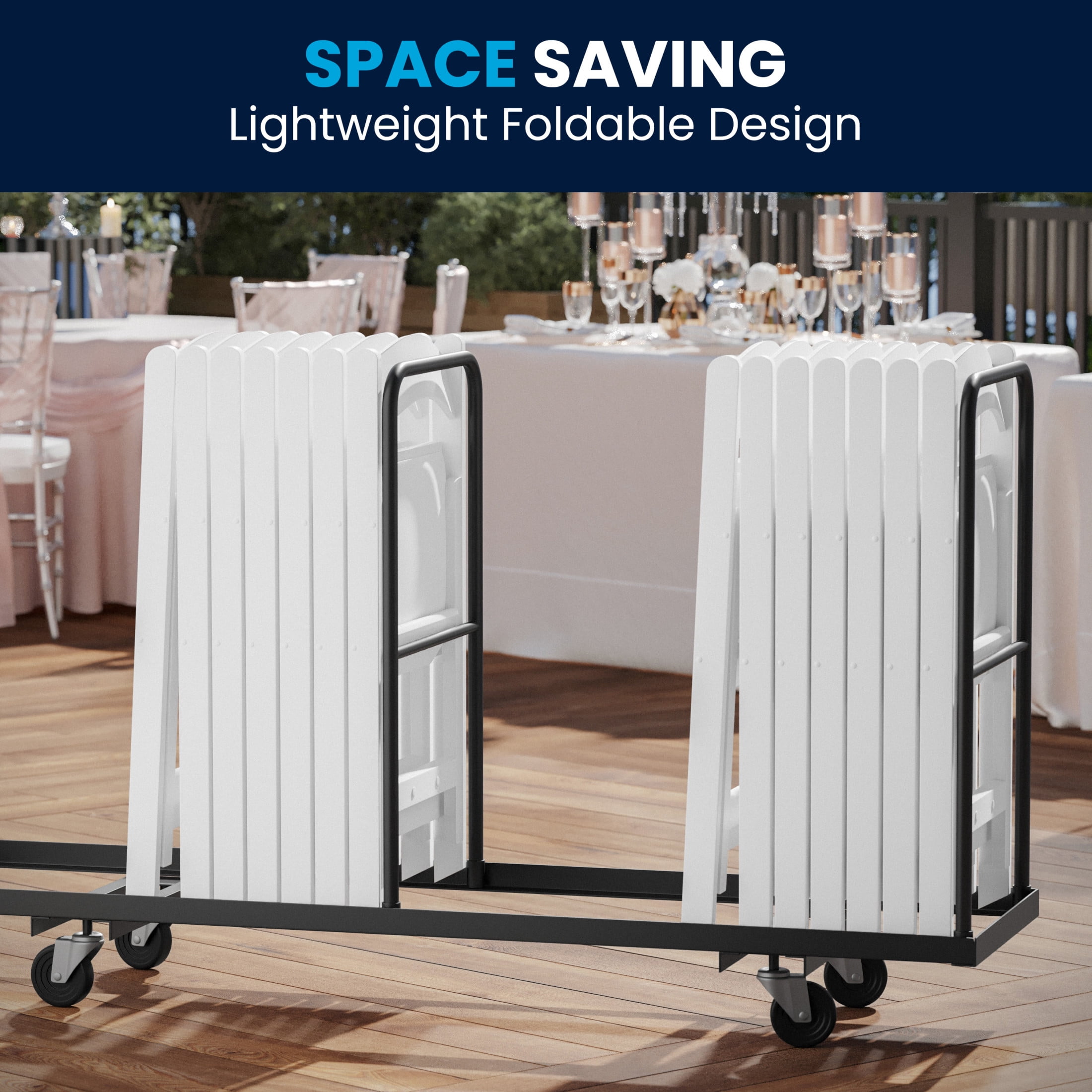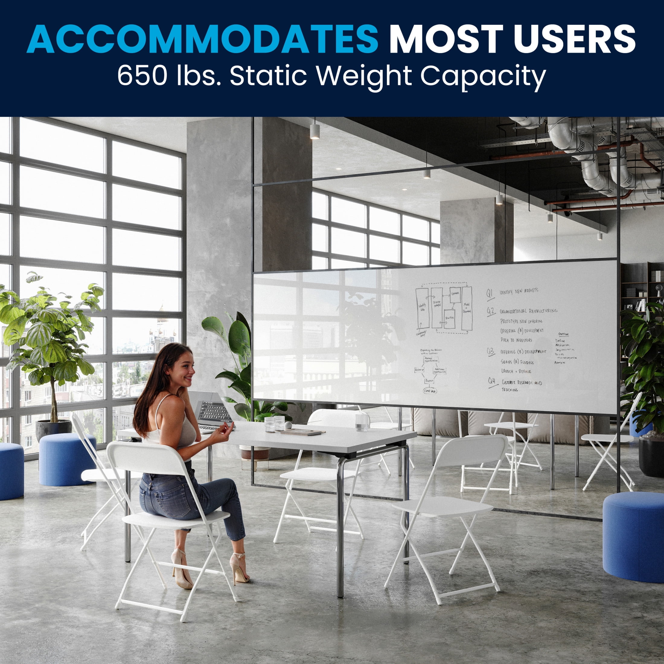 Always be ready for your next event or get-together with the Flash Furniture Hercules Series Big & Tall Commercial Folding Chairs. Whether you’re hosting a game night or catering event, planning weddings or business meetings, or organizing a school function, these folding plastic chairs offer a reliable, on-demand seating solution for commercial or home use both indoors and outdoors. The extra width and taller height make these Big & Tall chairs adaptable to all body types and ideal for those with mobility issues or anyone who just prefers more space, and the textured and contoured plastic seats with dry-assist drainage holes provide superior comfort while preventing water pooling. Made for portability and ease of use, the folding chairs have a lightweight design and feature protective floor caps that won’t mark up hard flooring surfaces while being moved. The user-friendly party chairs can also be nested horizontally to stack up to 50 chairs high from the floor or vertically in closets or sheds. With a combination of double-support braces and 18-gauge steel frames, these small folding chairs support up to 650 pounds of static weight and withstand years of quality use at indoor or outdoor events.