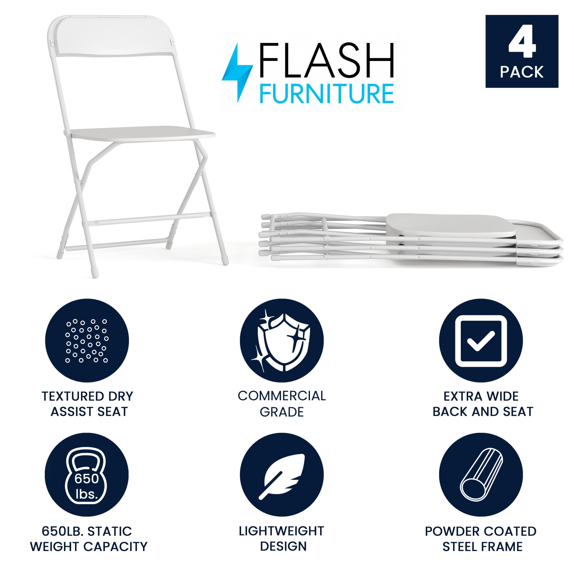 Flash Furniture Hercules Series Big & Tall Adult Stackable Plastic Folding Chairs, Set of 4, White