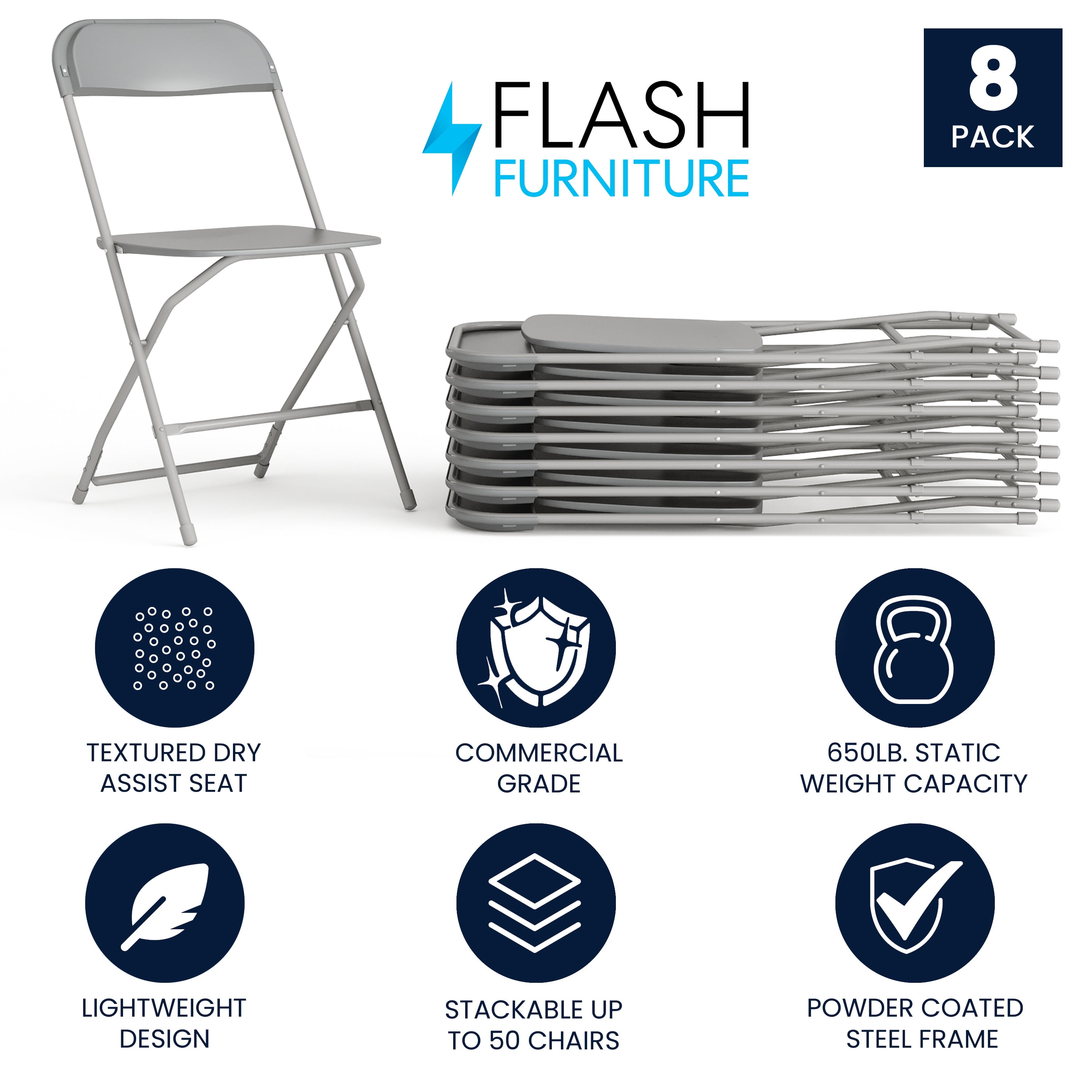 Flash Furniture Hercules Series Plastic Folding Chair Grey – 8 Pack 650LB Weight Capacity Comfortable Event Chair-Lightweight Folding Chair