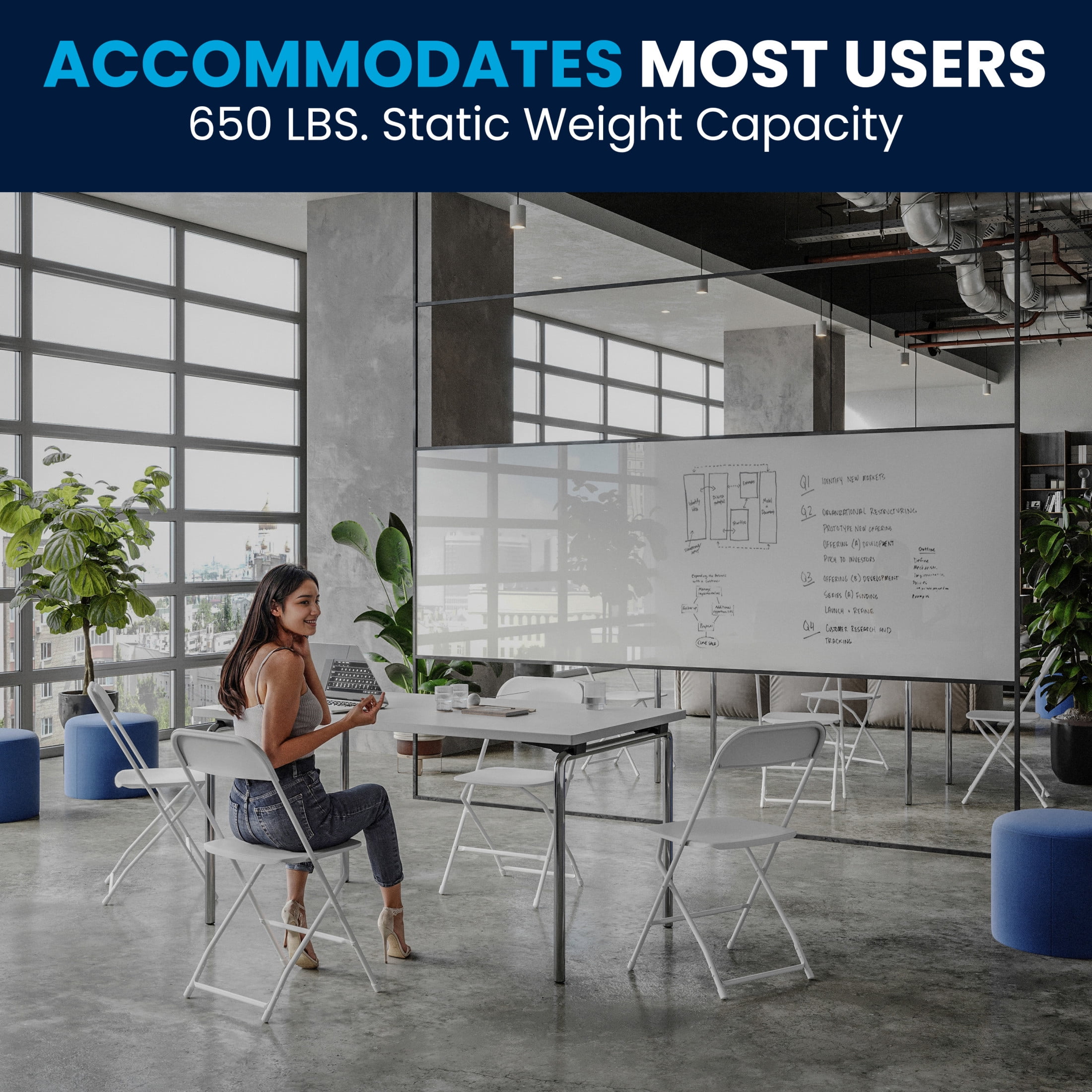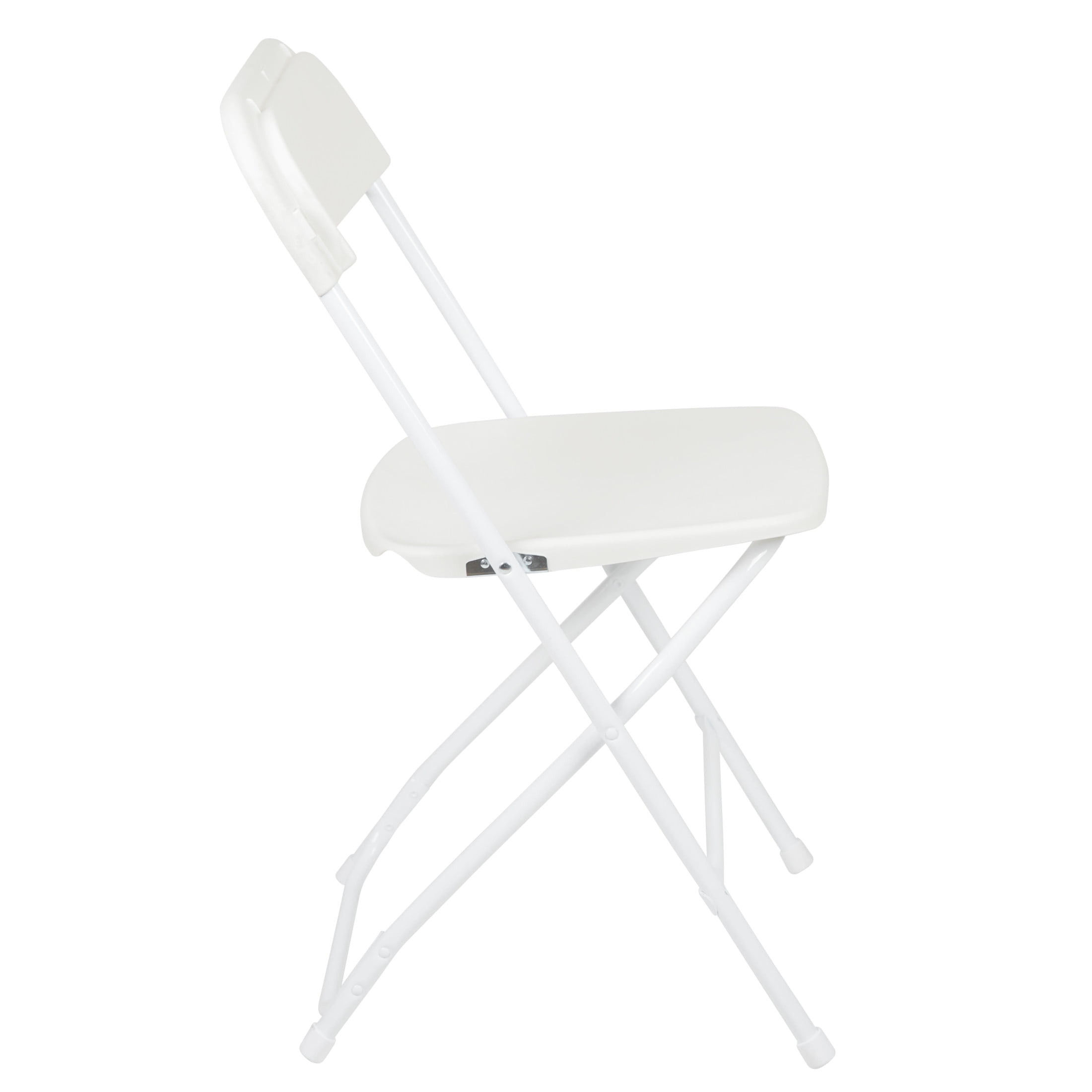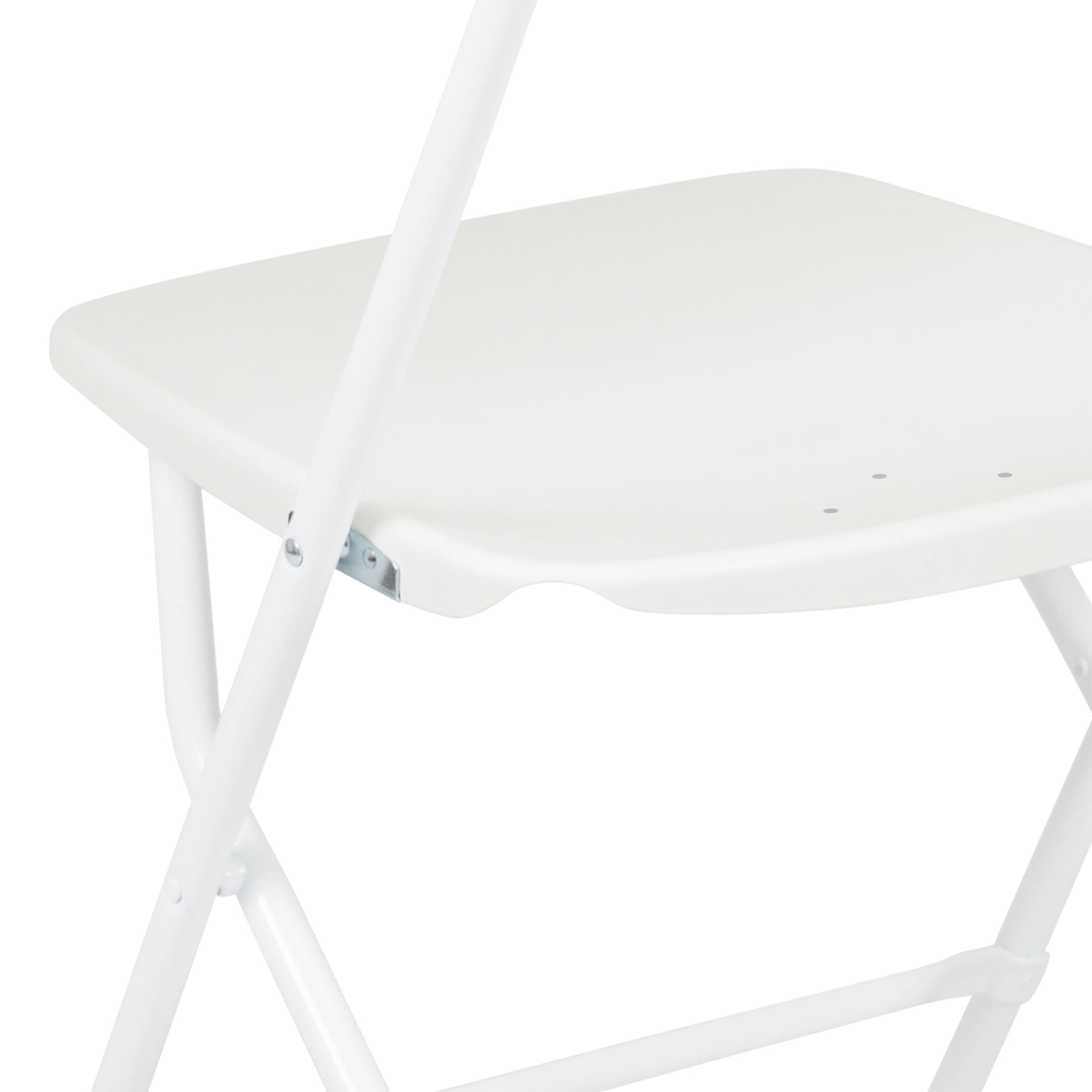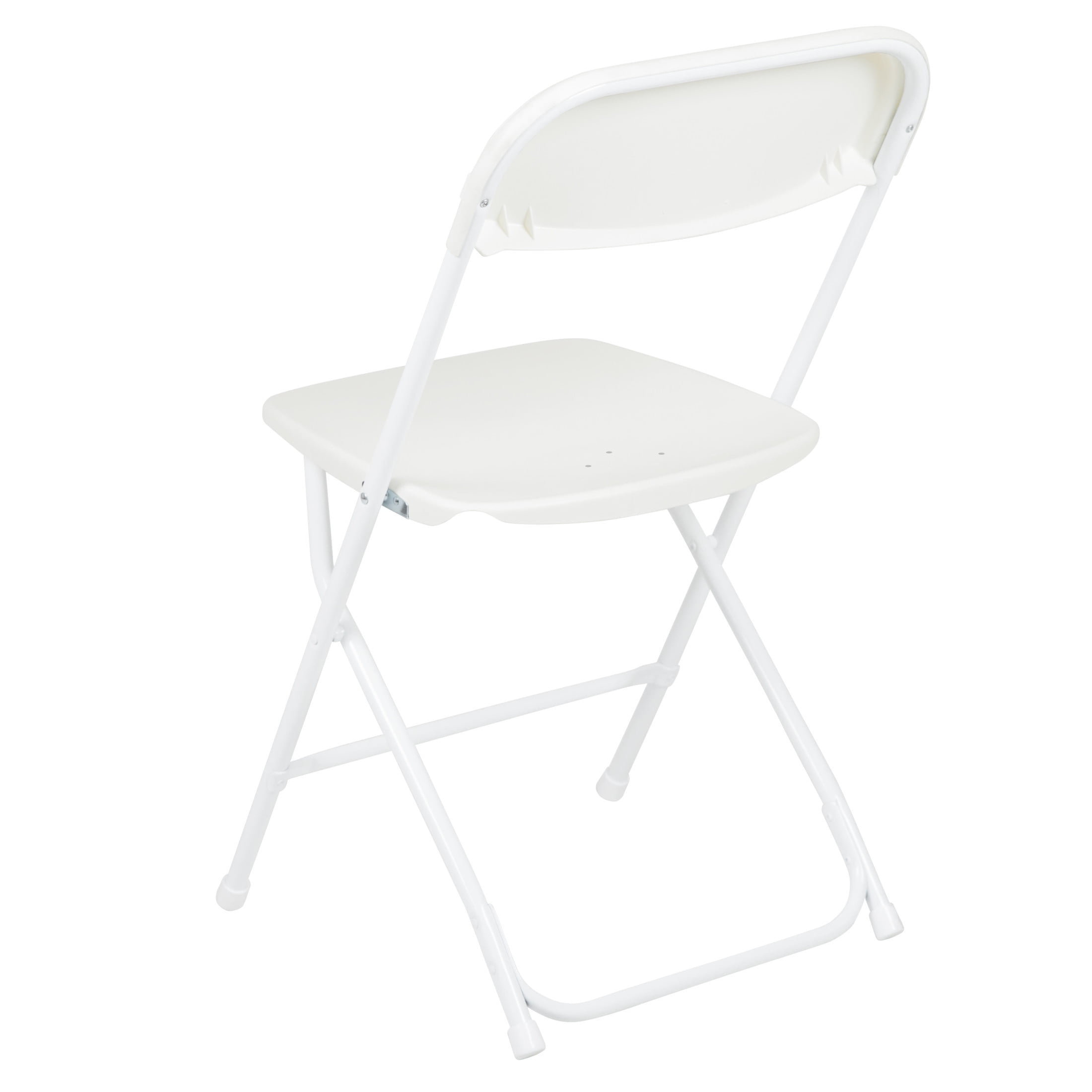 Flash Furniture Hercules Series Plastic Folding Event Chairs for Adults, Set of 10, White Textured and contoured plastic seats with dry-assist drainage holes Durable double-support braces and 18-gauge steel frames Lightweight, foldable design and floor caps for easy portability Chairs nest horizontally with a recommended stack quantity up to 50 high Each adult size chair supports up to 650 lbs. of static weight Open size: 17.5″ W x 18″ D x 31.5″ H; Folded size: 17.5″ W x 2.5″ D x 38.25″ H No assembly required; clean with water and a dry cloth as needed NO ASSEMBLY REQUIRED: Chairs measure 17.5″ W x 18″ D x 31.5″ H open and 17.5″ W x 2.5″ D x 38.25″ H folded with no assembly required; wipe down with water and a dry cloth for easy cleaning