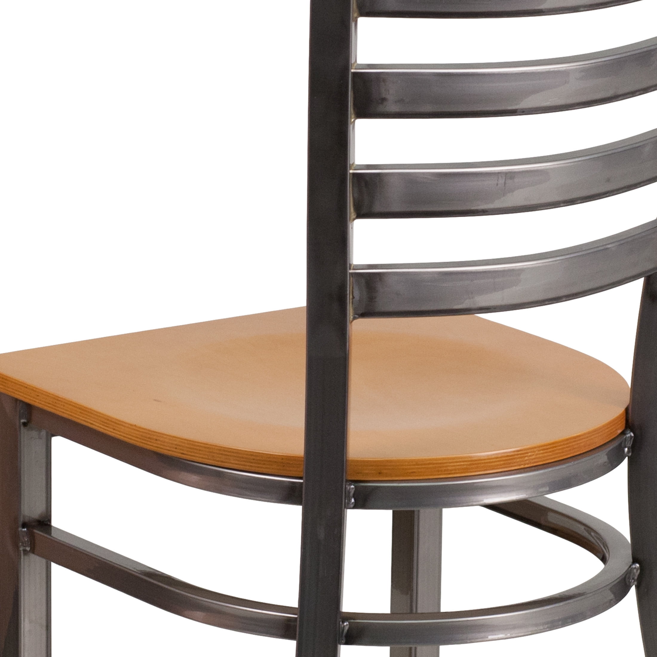 Create a first-rate dining experience by offering your patrons great food, service and attractive furnishings. Commercial furniture needs to be both durable and low maintenance so metal chairs are a popular choice for furnishing restaurants, pool halls, lounges, bars and other high traffic establishments. This Clear Coated Ladder Back Metal Restaurant Chair is easy to clean, which is an important aspect when it comes to a business. Built to withstand the everyday hustle and bustle in the restaurant and hospitality business, these dining chairs will also look great in your home. The beautiful wood seat and ladder back design will keep guests comfortable. The frame is stabilized using a welded support bar, while the floor glides help protect your floors and ensure smooth gliding. Use this chair in your kitchen or dining room to give your decor a fresh look. The simple and lightweight design of this stool will not disappoint, whether used in the home or your commercial business.