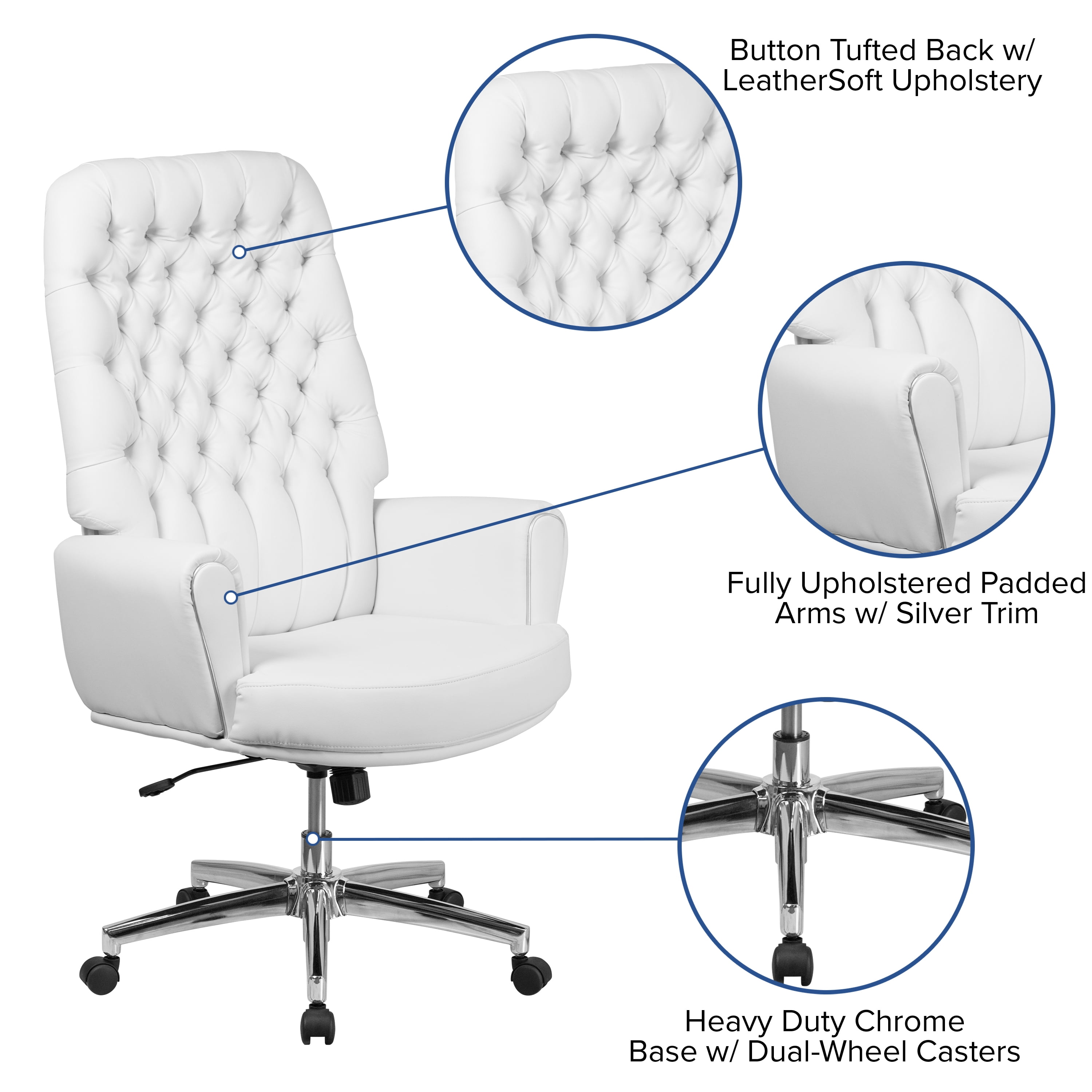 Flash Furniture High Back Traditional Tufted White LeatherSoft Executive Swivel Office Chair with Arms