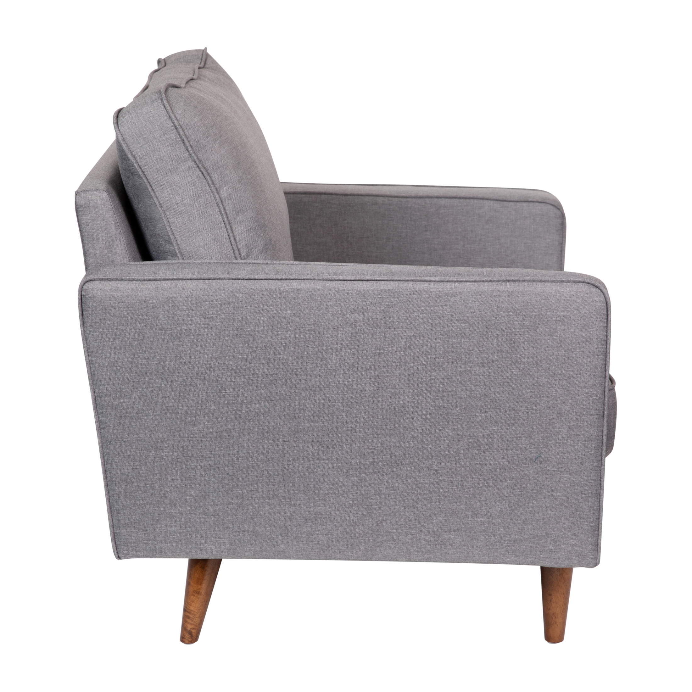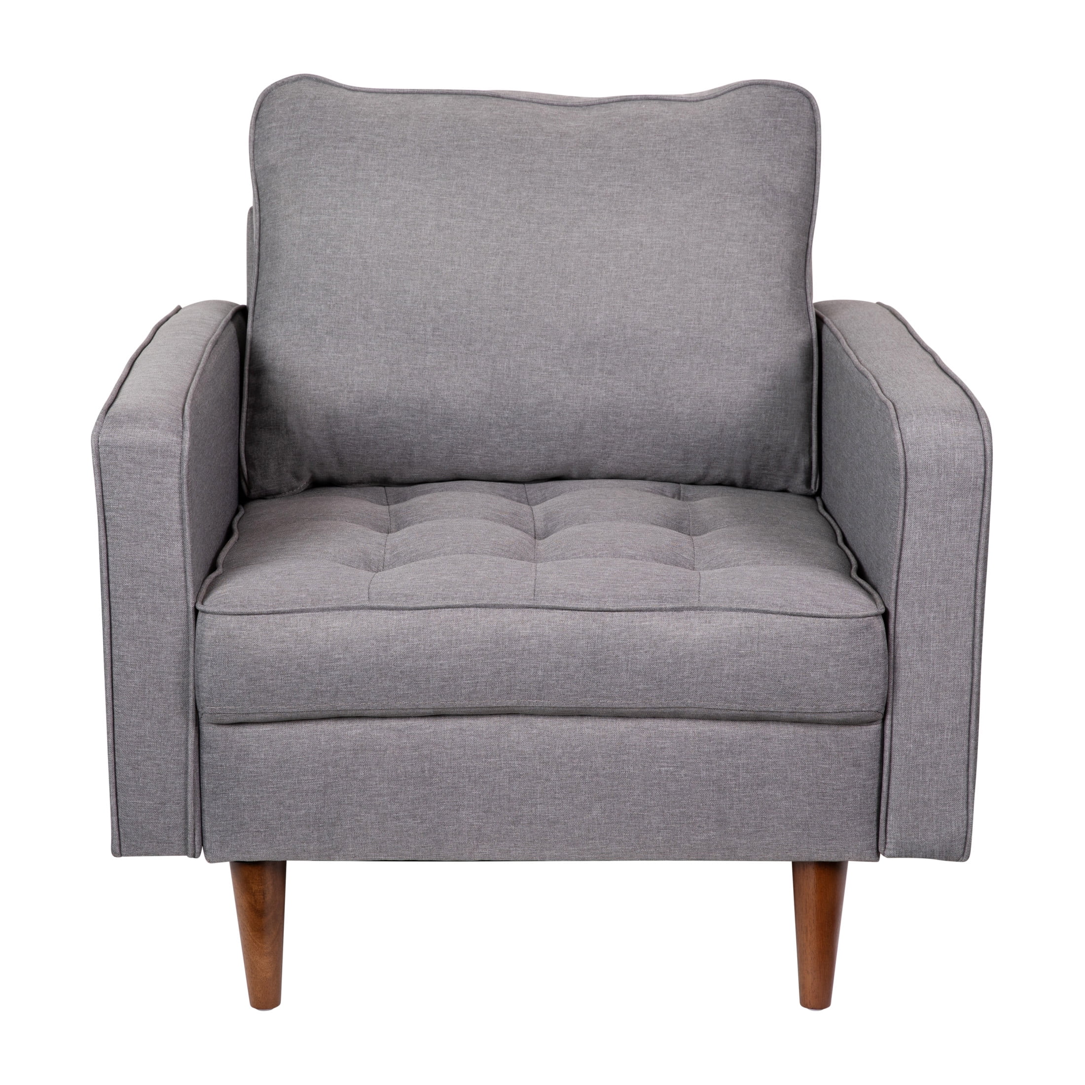 Flash Furniture Hudson Living Room Chair, Slate Gray Fabric Mid-Century Modern Commercial Grade Compact Upholstered Chair Slate Gray Faux Linen Fabric Upholstery and Buttonless Tufted Seat Cushion Extra Supportive Foam and Pocket Spring Cushions Solid Wood Legs and Wooden Frame Hold up to 300 LBS. Static Weight Floor Protector Fixed Floor Glides Wipes Clean with a Damp Cloth Ships in a Single Box and Assembles in 30 Minutes or Less Pair this chair with other pieces in the collection to furnish your living room, bedroom, den, or home office PRODUCT MEASUREMENTS: Overall Size: 33″W x 30.5″D x 27″H; Seat Size: 25″W x 26.75″D x 18″H; Back Size: 24.75″W x 11″H; Arm Size: 23″H from floor; 5.5″H from seat