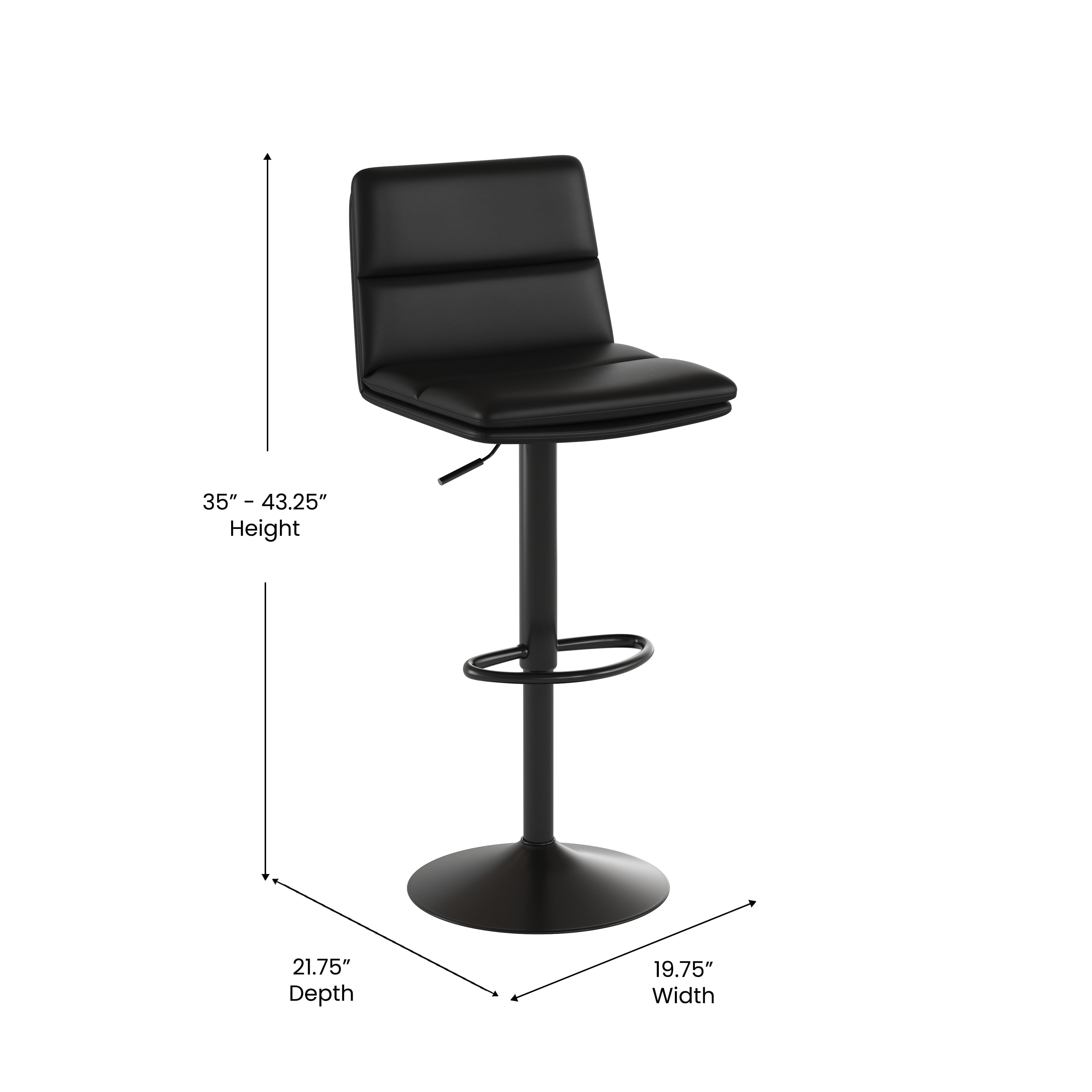 Flash Furniture Hughes Modern Mid-Back Bar Stool, Black, Set of 2 Modern Mid-Back Armless Commercial Grade Adjustable Bar Stools – Set of 2 Channel Stitched Black LeatherSoft Upholstery Comfort Foam Padded Backs and Seats 360° Swivel Seat Adjusts from Counter to Bar Height Steel Frames Hold up to 300 LBS. Static Weight and Feature Integrated Footrests Wipe Clean with a Dry Cloth Built-In Rubber Ring Prevents Damage to Hard Flooring Surfaces Quick and Easy Assembly and Wipes Clean with a Dry Cloth LeatherSoft is leather and polyurethane for added softness and durability Commercial grade dining stools for home or business use PRODUCT MEASUREMENTS: Overall Size: 19.75″W x 21.75″D x 35-43.25″H; Seat Size: 16.5″W x 15.75″D x 25-33.5″H; Back Size: 15.75″W x 11.5″H Flash Furniture Hughes Modern Mid-Back Bar Stool, Black, Set of 2 Modern Mid-Back Armless Commercial Grade Adjustable Bar Stools – Set of 2 Channel Stitched Black LeatherSoft Upholstery Comfort Foam Padded Backs and Seats 360° Swivel Seat Adjusts from Counter to Bar Height Steel Frames Hold up to 300 LBS. Static Weight and Feature Integrated Footrests Wipe Clean with a Dry Cloth Built-In Rubber Ring Prevents Damage to Hard Flooring Surfaces Quick and Easy Assembly and Wipes Clean with a Dry Cloth LeatherSoft is leather and polyurethane for added softness and durability Commercial grade dining stools for home or business use PRODUCT MEASUREMENTS: Overall Size: 19.75″W x 21.75″D x 35-43.25″H; Seat Size: 16.5″W x 15.75″D x 25-33.5″H; Back Size: 15.75″W x 11.5″H Flash Furniture Hughes Modern Mid-Back Bar Stool, Black, Set of 2 Modern Mid-Back Armless Commercial Grade Adjustable Bar Stools – Set of 2 Channel Stitched Black LeatherSoft Upholstery Comfort Foam Padded Backs and Seats 360° Swivel Seat Adjusts from Counter to Bar Height Steel Frames Hold up to 300 LBS. Static Weight and Feature Integrated Footrests Wipe Clean with a Dry Cloth Built-In Rubber Ring Prevents Damage to Hard Flooring Surfaces Quick and Easy Assembly and Wipes Clean with a Dry Cloth LeatherSoft is leather and polyurethane for added softness and durability Commercial grade dining stools for home or business use PRODUCT MEASUREMENTS: Overall Size: 19.75″W x 21.75″D x 35-43.25″H; Seat Size: 16.5″W x 15.75″D x 25-33.5″H; Back Size: 15.75″W x 11.5″H Flash Furniture Hughes Modern Mid-Back Bar Stool, Black, Set of 2 Modern Mid-Back Armless Commercial Grade Adjustable Bar Stools – Set of 2 Channel Stitched Black LeatherSoft Upholstery Comfort Foam Padded Backs and Seats 360° Swivel Seat Adjusts from Counter to Bar Height Steel Frames Hold up to 300 LBS. Static Weight and Feature Integrated Footrests Wipe Clean with a Dry Cloth Built-In Rubber Ring Prevents Damage to Hard Flooring Surfaces Quick and Easy Assembly and Wipes Clean with a Dry Cloth LeatherSoft is leather and polyurethane for added softness and durability Commercial grade dining stools for home or business use PRODUCT MEASUREMENTS: Overall Size: 19.75″W x 21.75″D x 35-43.25″H; Seat Size: 16.5″W x 15.75″D x 25-33.5″H; Back Size: 15.75″W x 11.5″H