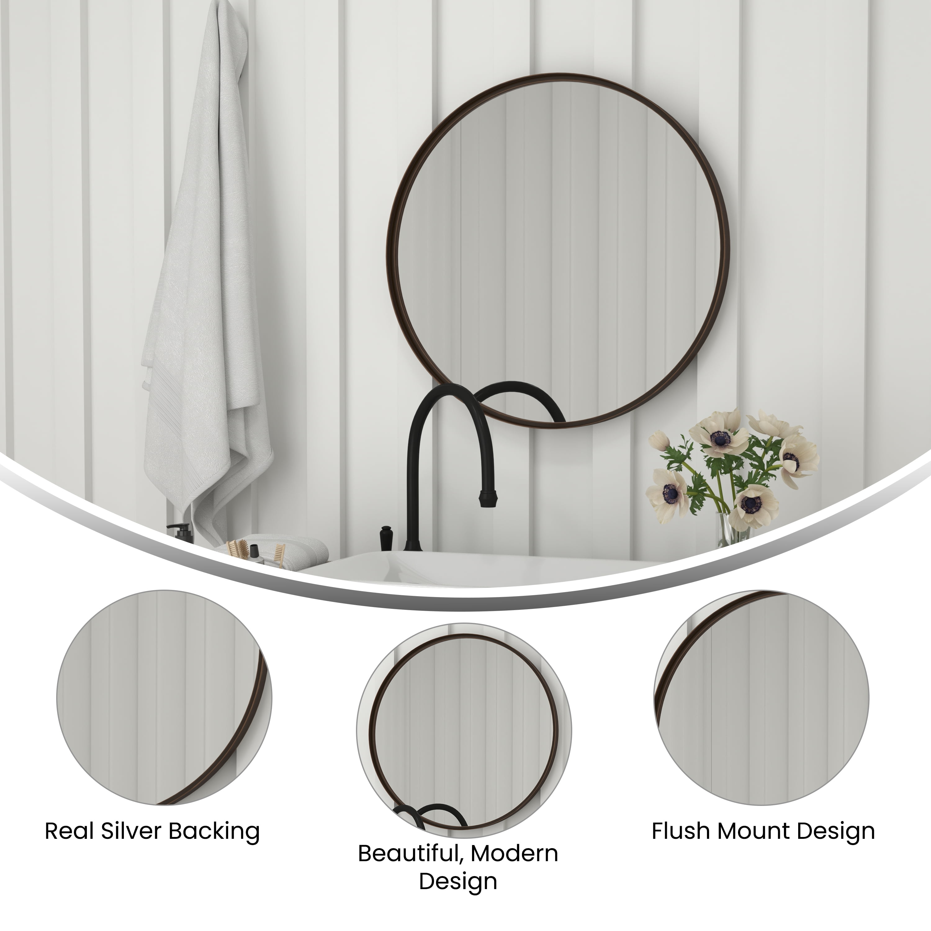 Flash Furniture Jennifer 27.5″ Round Bronze Metal Framed Wall Mirror – Large Accent Mirror for Bathroom, Vanity, Entryway, Dining Room, & Living Room Modern 27.5 Inch Round Wall Mount Accent Mirror Slim Silhouette Black Metal Frame Frame Thickness 2″ Real Silver Backed HD Glass Shatterproof Backing for Safety 3 Types of Mounting Hardware Included Wall mount mirror for use as a vanity, accent, entryway, or bathroom mirror PRODUCT MEASUREMENTS: Overall Size: 27.56″W x 27.56″D x 1.97″H Flash Furniture Jennifer 27.5″ Round Bronze Metal Framed Wall Mirror – Large Accent Mirror for Bathroom, Vanity, Entryway, Dining Room, & Living Room Modern 27.5 Inch Round Wall Mount Accent Mirror Slim Silhouette Black Metal Frame Frame Thickness 2″ Real Silver Backed HD Glass Shatterproof Backing for Safety 3 Types of Mounting Hardware Included Wall mount mirror for use as a vanity, accent, entryway, or bathroom mirror PRODUCT MEASUREMENTS: Overall Size: 27.56″W x 27.56″D x 1.97″H Flash Furniture Jennifer 27.5″ Round Bronze Metal Framed Wall Mirror – Large Accent Mirror for Bathroom, Vanity, Entryway, Dining Room, & Living Room Modern 27.5 Inch Round Wall Mount Accent Mirror Slim Silhouette Black Metal Frame Frame Thickness 2″ Real Silver Backed HD Glass Shatterproof Backing for Safety 3 Types of Mounting Hardware Included Wall mount mirror for use as a vanity, accent, entryway, or bathroom mirror PRODUCT MEASUREMENTS: Overall Size: 27.56″W x 27.56″D x 1.97″H Flash Furniture Jennifer 27.5″ Round Bronze Metal Framed Wall Mirror – Large Accent Mirror for Bathroom, Vanity, Entryway, Dining Room, & Living Room Modern 27.5 Inch Round Wall Mount Accent Mirror Slim Silhouette Black Metal Frame Frame Thickness 2″ Real Silver Backed HD Glass Shatterproof Backing for Safety 3 Types of Mounting Hardware Included Wall mount mirror for use as a vanity, accent, entryway, or bathroom mirror PRODUCT MEASUREMENTS: Overall Size: 27.56″W x 27.56″D x 1.97″H