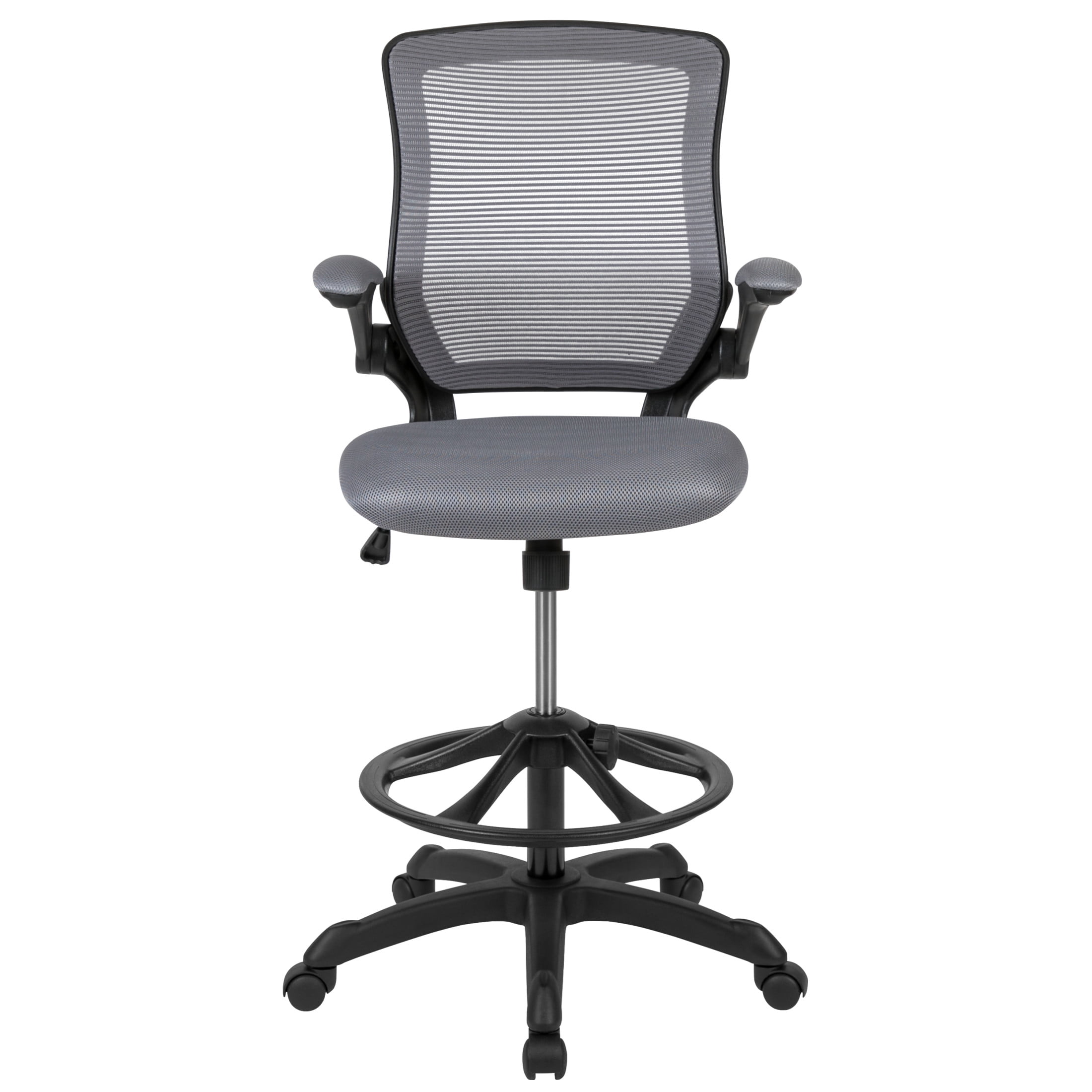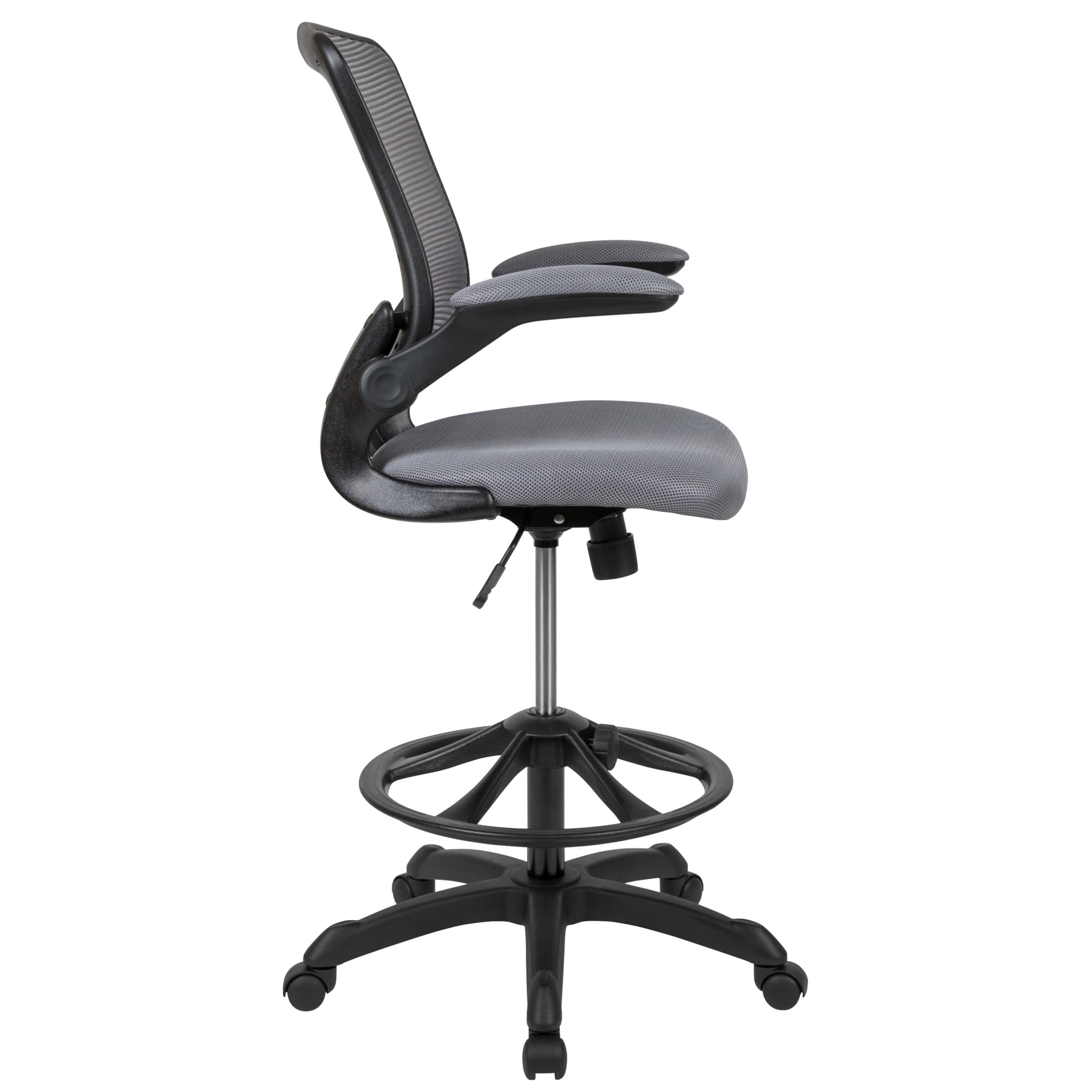 Flash Furniture Kale Mid-Back Dark Gray Mesh Ergonomic Drafting Chair with Adjustable Foot Ring and Flip-Up Arms