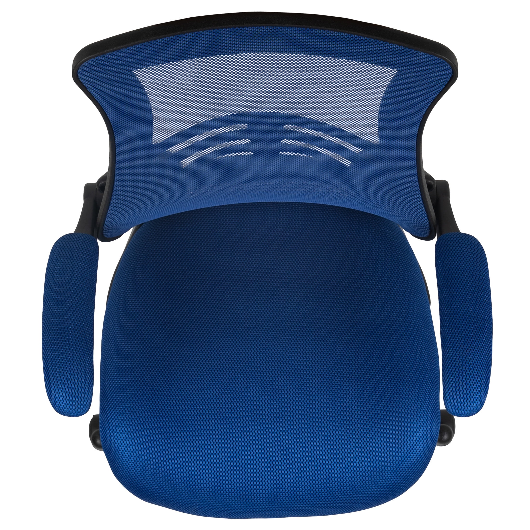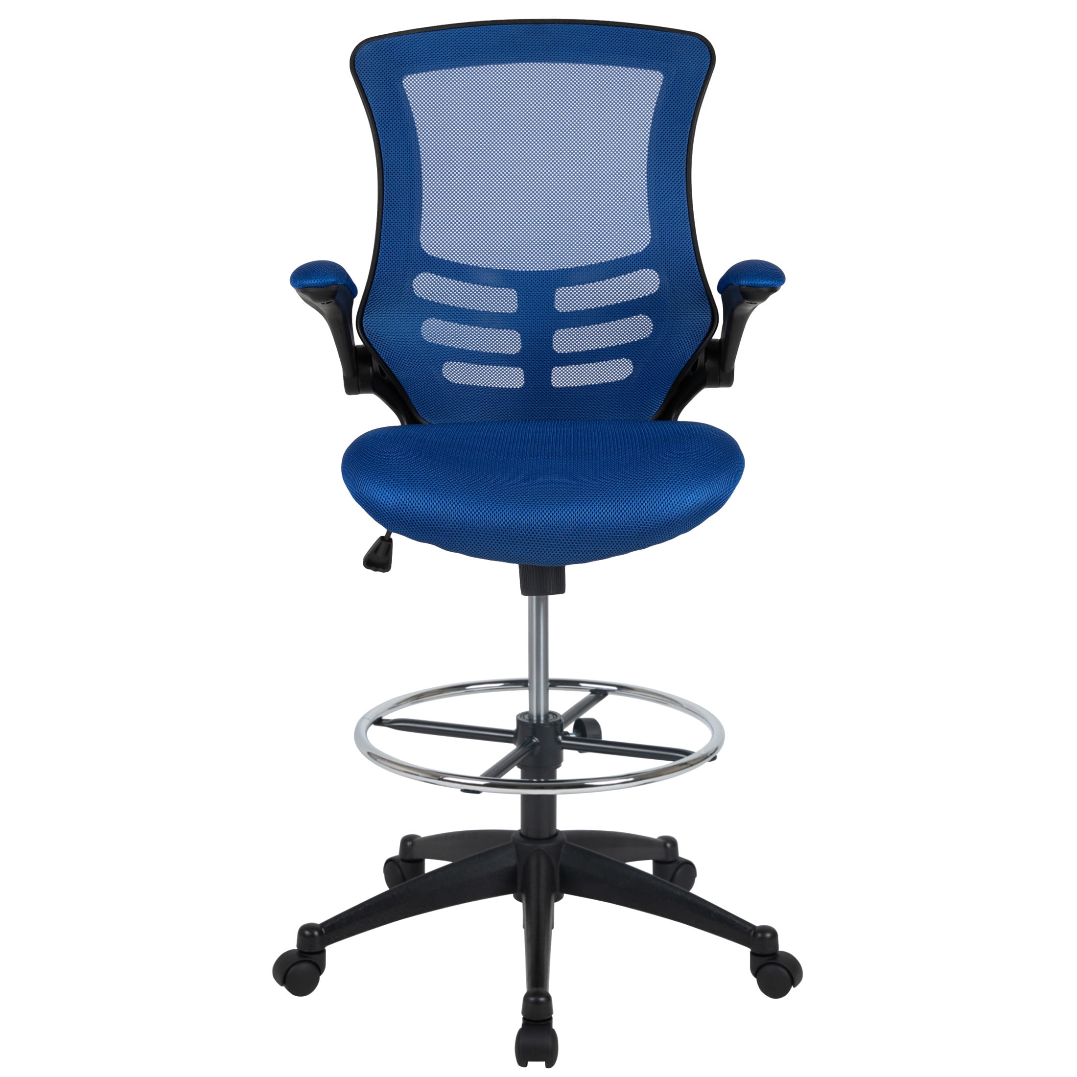 Flash Furniture Kelista Mid-Back Blue Mesh Ergonomic Drafting Chair with Adjustable Foot Ring and Flip-Up Arms