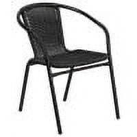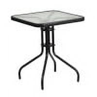Flash Furniture Lila 23.5” Square Glass Metal Table with 2 Black Rattan Stack Chairs Table and Chair Set Set Includes Table and 2 Chairs Designed for Indoor and Outdoor Use Designed for Commercial and Residential Use Square Table Top Size: 23.5″ Round 5mm Thick Glass 1.5″ Edge Top Black Powder Coat Finish Protective Plastic Floor Glides Table Size: 23.5″W x 23.5″D x 28″H Base Size: 19″W Stackable Cafe Chair 352 lb. Weight Capacity Lightweight Design Curved Back Black Rattan Seat and Back Integrated Arms Cross Braces provide extra stability Black Powder Coated Frame Finish Plastic Floor Glides Chair Size: 21.75″W x 23.5″D x 28.5″H Back Size: 11.5″W x 13.5″H Seat Size: 16.5″W x 15″D x 17″H PRODUCT MEASUREMENTS: Table Size: 23.5″W x 23.5″D x 28″H; Base Size: 19″W; Chair Size: 21.75″W x 23.5″D x 28.5″H; Back Size: 11.5″W x 13.5″H; Seat Size: 16.5″W x 15″D x 17″H