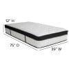 Flash Furniture Louis 14 Inch Metal Platform Bed Frame with 12 Inch Memory Foam Pocket Spring Mattress in a Box (No Box Spring Required) – Twin Bed Bundle: Platform Bed and Mattress Set 14 Inch Twin Metal Platform Bed Frame – No Box Spring Required 12.5 Inch Clearance from the frame bottom makes cleaning a breeze and provides ample storage 19 Gauge Solid Steel and Metal Screw Construction supports up to 650 pounds, Felt Pads between the middle rail and support slats for noise reduction Assembles in Less Than 30 Minutes with Included Tools for quick setup CertiPUR-US Certified Foam Twin Mattress Size – Medium Firm Comfort Tight Top Bed Mattress with Memory Foam Padding 12″ Memory Foam Mattress with 10″ Pocket Spring Coils; 6.5 Gauge Springs promote air flow for comfortable sleep Compressed and shipped in a box for easy delivery and setup, Please allow 48 – 72 hours for complete mattress expansion Hybrid pocket spring and memory foam mattress with freestanding platform bed foundation bundle ideal for bedrooms, guestrooms and smaller sleeping areas PRODUCT MEASUREMENTS: Overall Size: 39″W x 75″D x 26″H