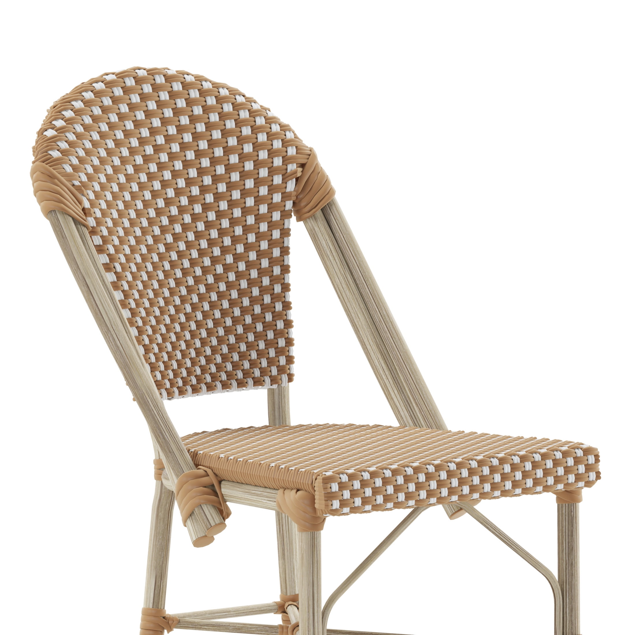 Flash Furniture Lourdes Set of 2 Stackable Indoor/Outdoor Bistro 30″ High Bar Stools, Commercial Grade, Natural/White and Light Natural Finish
