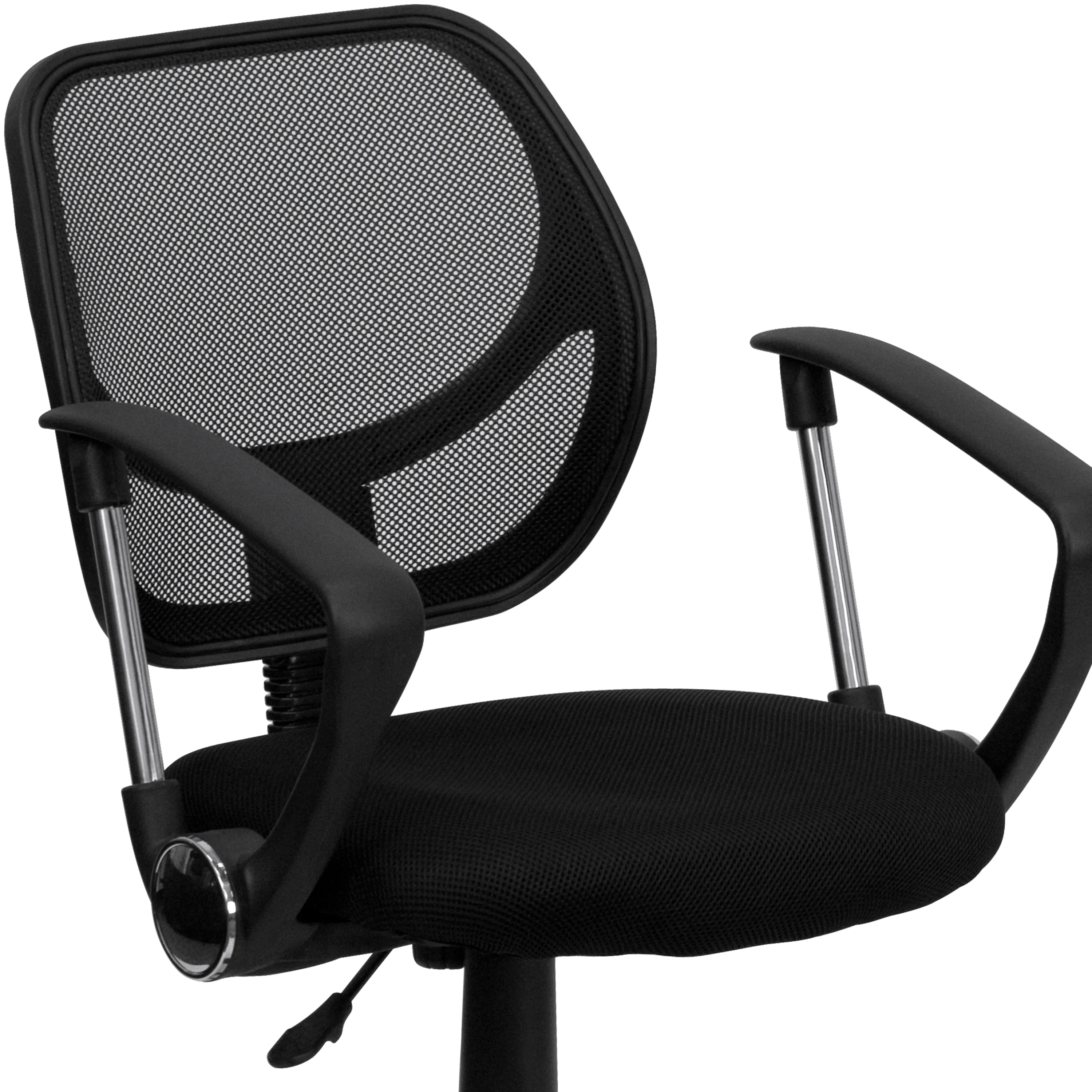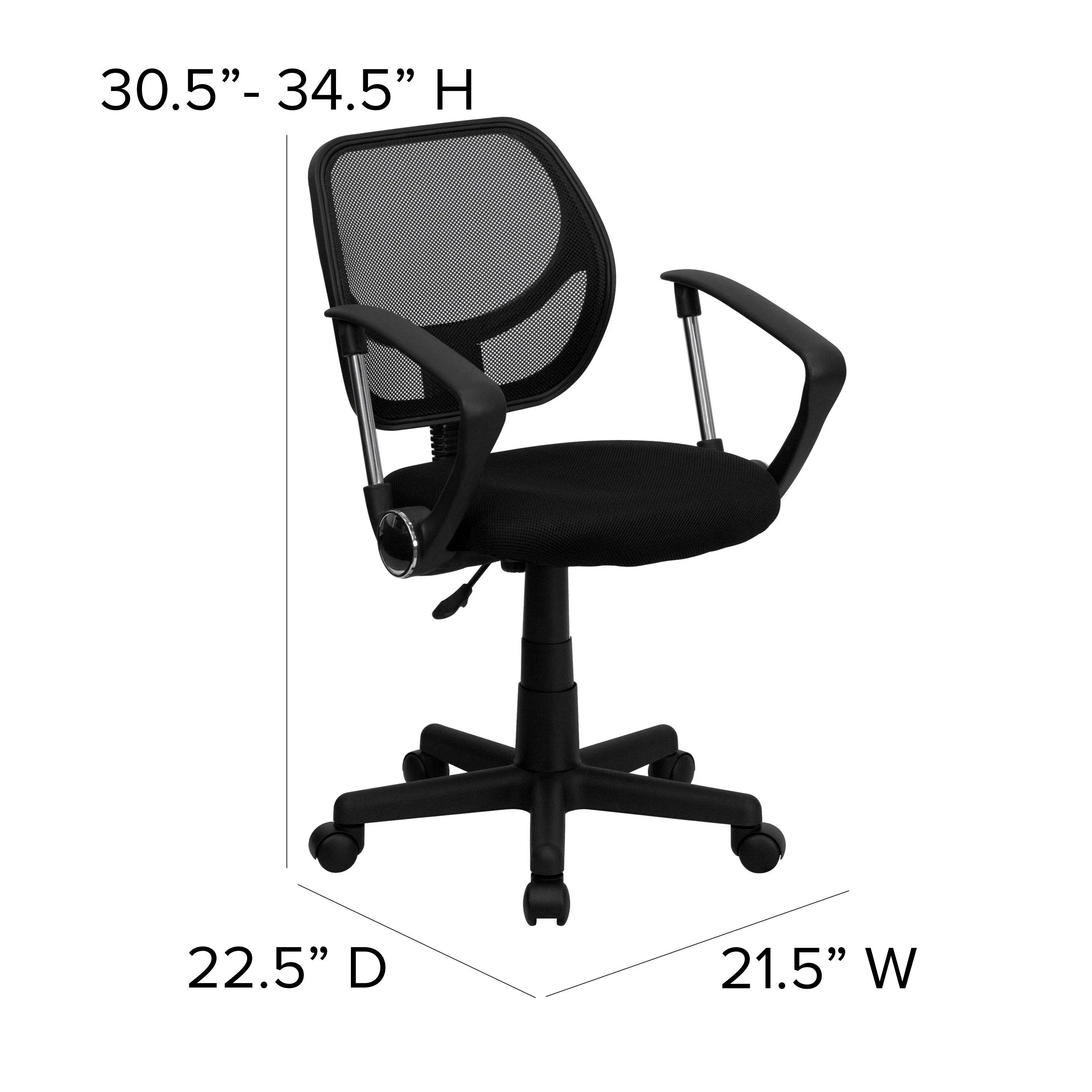 The benefits of a comfortable chair are many and should never be underestimated. This black mesh task chair supports you when you’re working long hours to get the job done, in your dorm, at the office and at home. The transparent mesh back allows air to circulate, keeping you cool no matter how high the pressure gets. The swivel seat is padded with 2″ of foam and covered with black mesh upholstery. Built-in lumbar support helps prevent back strain and muscle fatigue. Raise and lower the seat using the pneumatic seat height adjustment lever, conveniently located below the seat. The heavy-duty, nylon base with dual wheel casters makes it easy to roll across the floor. Whether you’re sitting in class, studying for a final exam or working to beat a tight deadline, this stylish chair will keep you cool and comfortable throughout your busy day.