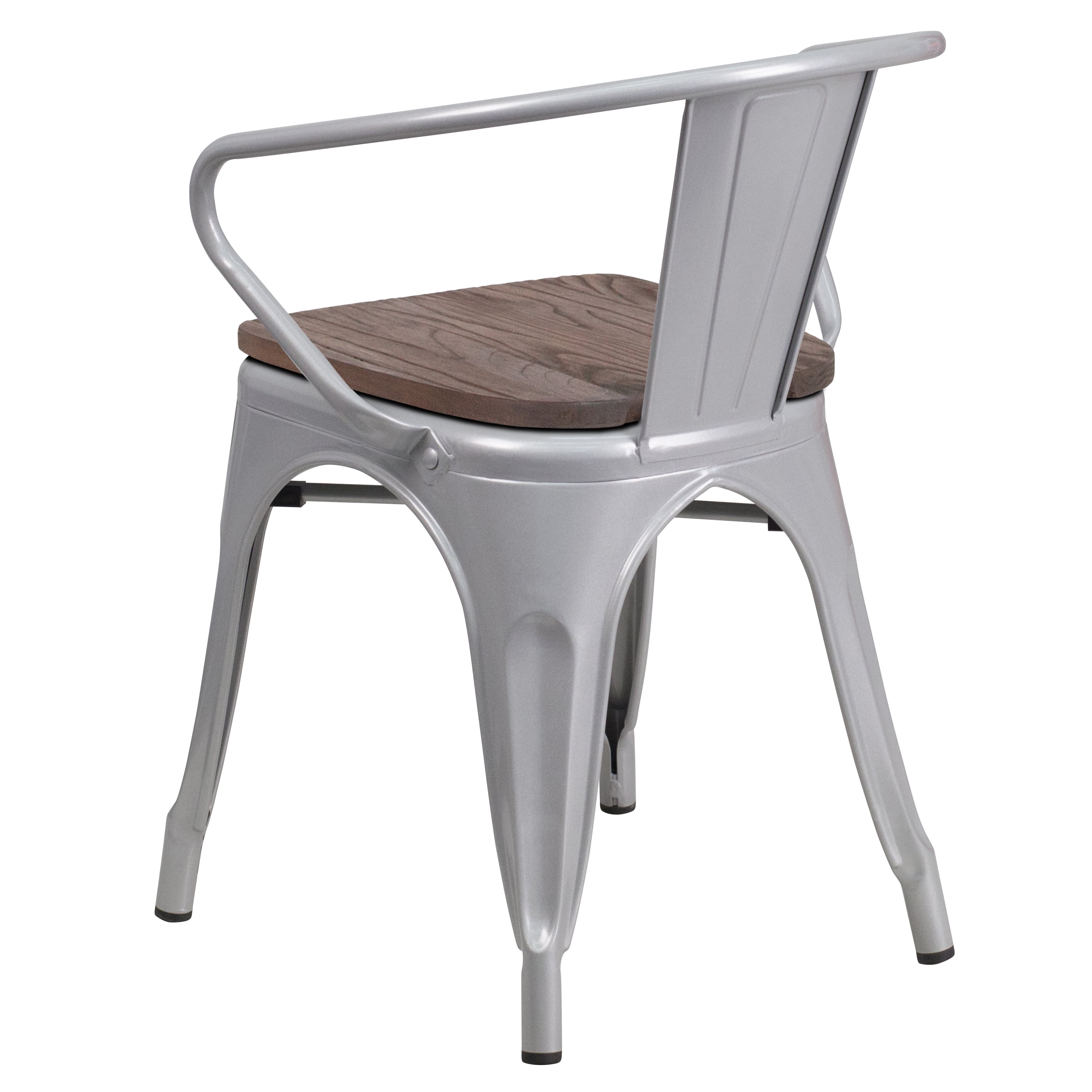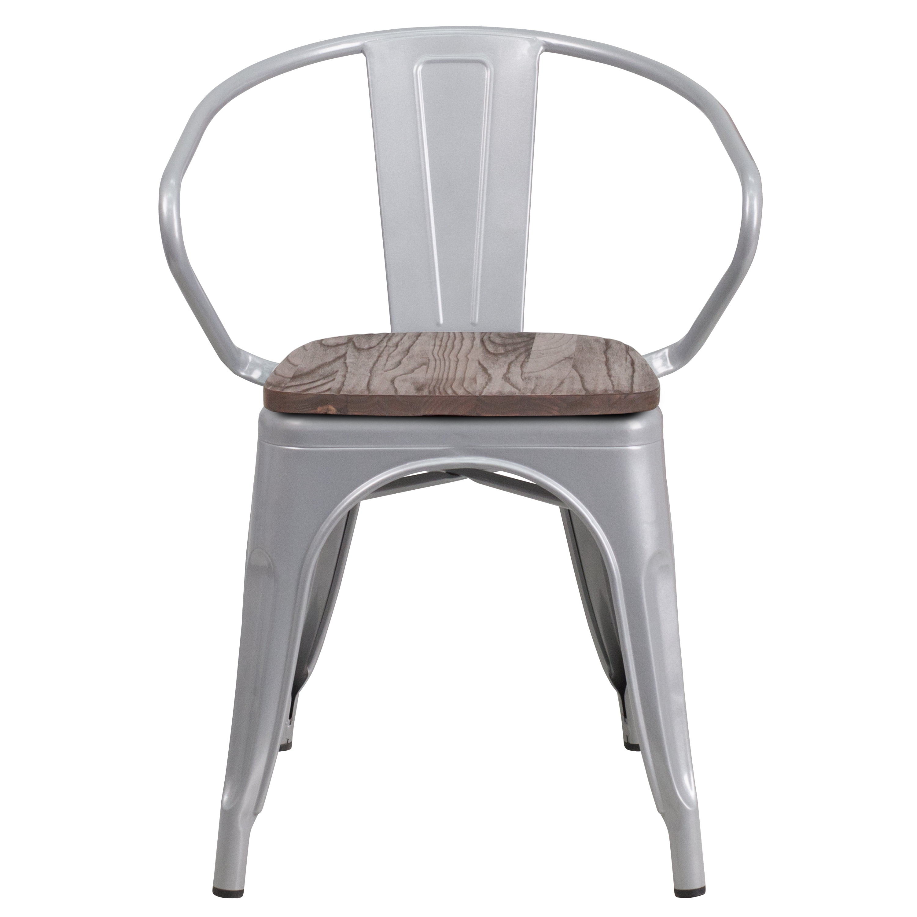 Flash Furniture Luna Silver Metal Chair with Wood Seat and Arms