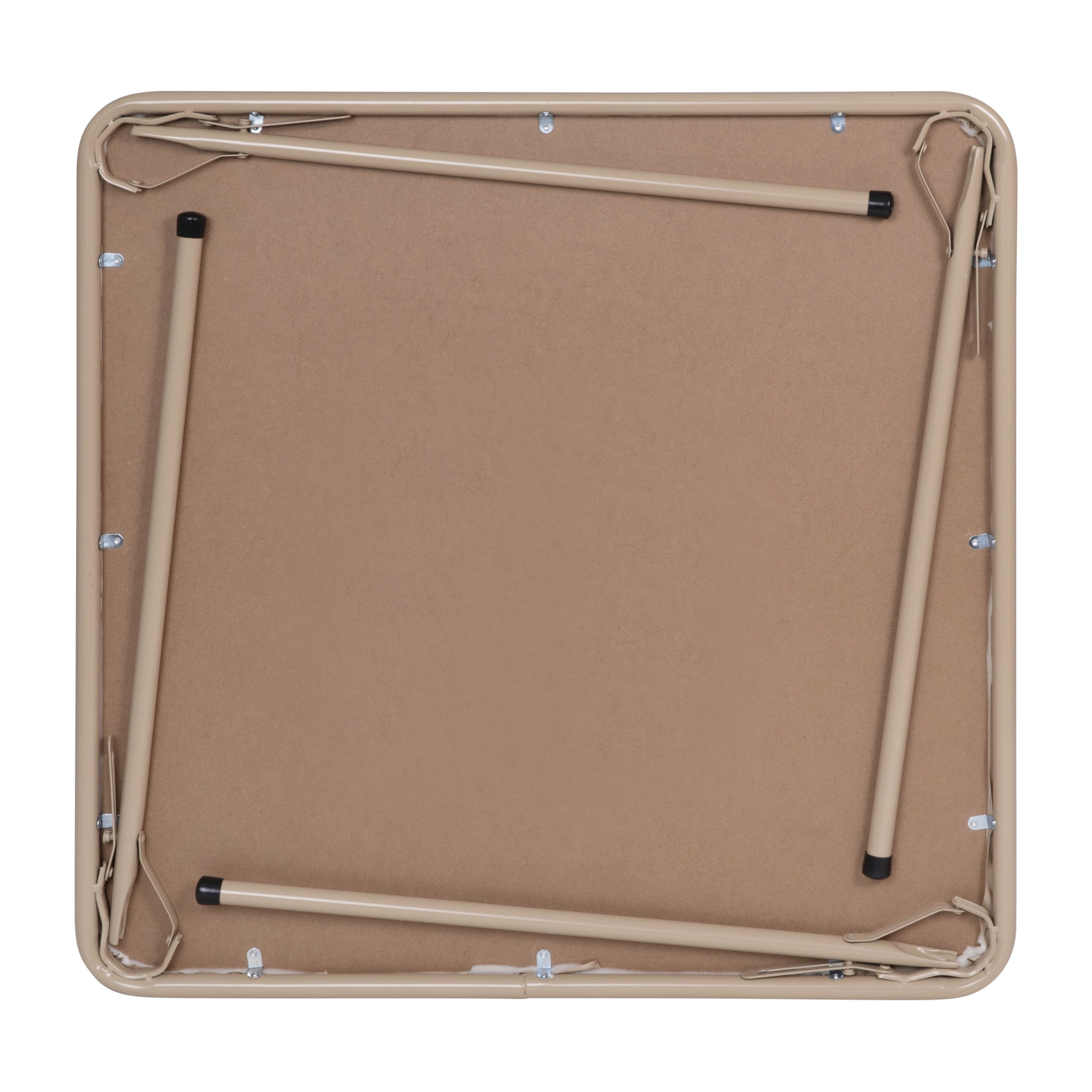 Flash Furniture Madison 5-Piece Vinyl Folding Card Table and Chairs Set, Tan 5-piece set includes 1 foldable square table and 4 foldable chairs Great for game nights, family gatherings, catering events, parties, and more Table features a padded top to help slow down thrown cards Table and chairs are lightweight and easy to fold for compact storage Protective plastic floor glides for easy portability No assembly required Easy to clean – wipe down with water and a dry cloth as needed Table size: 33.5″W x 33.5″D x 27.75″H; supports up to 130 lbs. of static weight Chair size (4): 17.25″W x 18″D x 31.25″H; supports up to 300 lbs. of static weight NO ASSEMBLY REQUIRED: Measures 33.5″ W x 33.5″ D x 27.75″ H and each folding event chair measures 17.25″ W x 18″ D x 31.25″ H with no assembly required, making this set the perfect size for hospitality facilities, community centers, or dining rooms