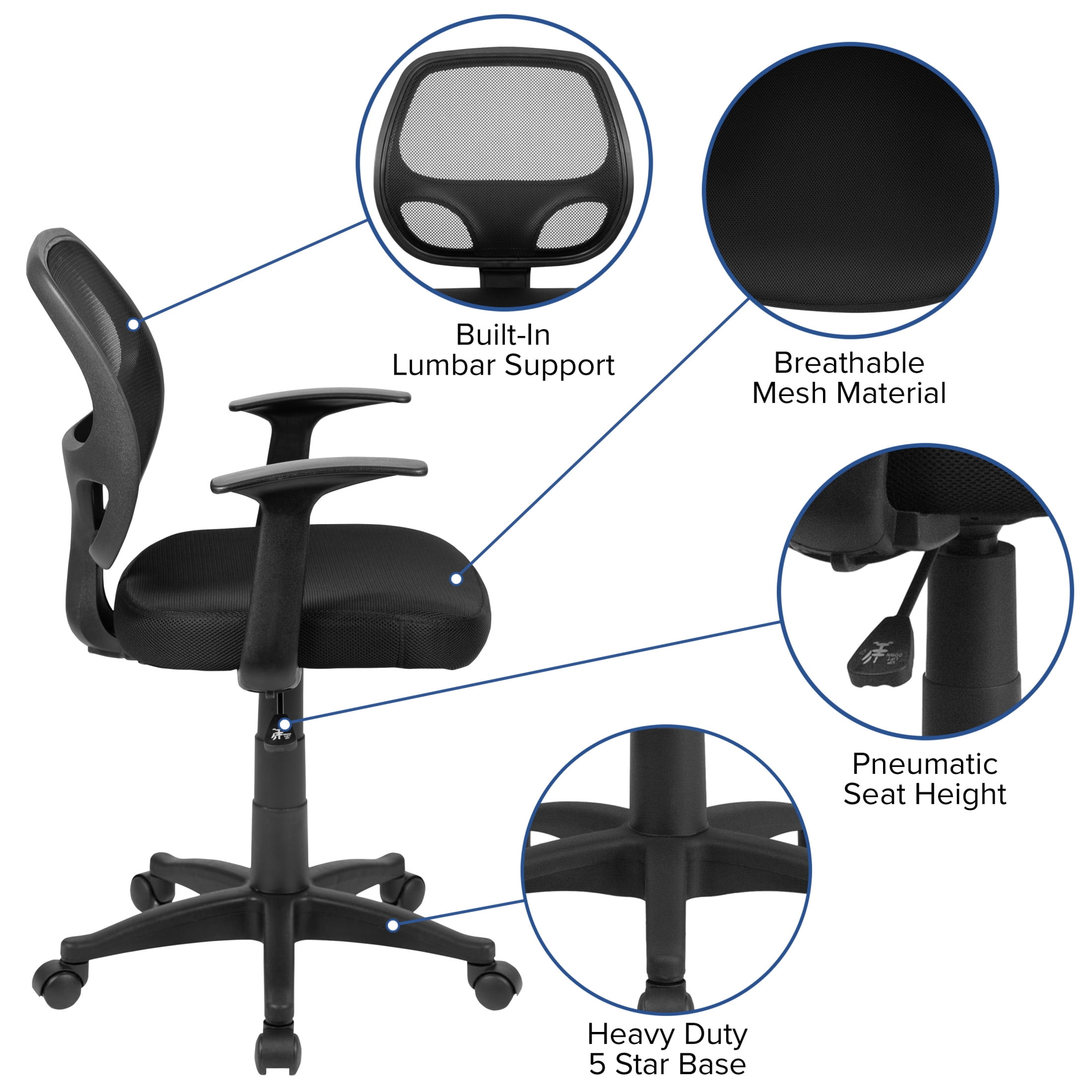 Flash Furniture Mallard Mid-Back Swivel Mesh Office Chair with Padded Seat and T-Arms, Black