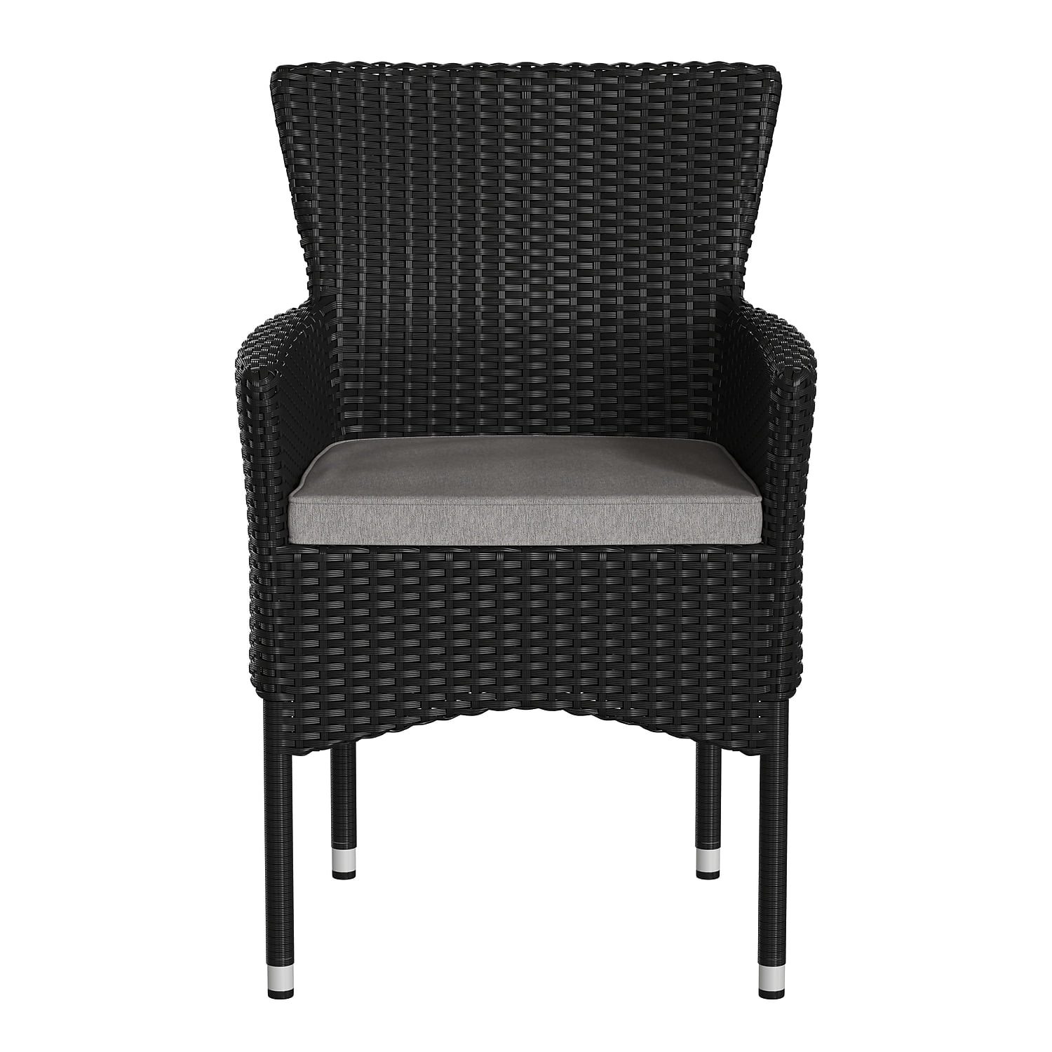 Flash Furniture Maxim Modern Foam Wicker Patio Armchair with Plush Foam Cushions, Black/Gray (4 Set) Set of 4 Flash Furniture Maxim Modern Black Wicker Patio Armchairs, perfect for deck or backyard use Fade and weather-resistant black polyethylene wicker design Comfortable curved back and integrated armrests for enhanced support Includes plush high density foam all-weather cushions for added comfort Durable powder-coated steel frame supports up to 350 lbs. static weight