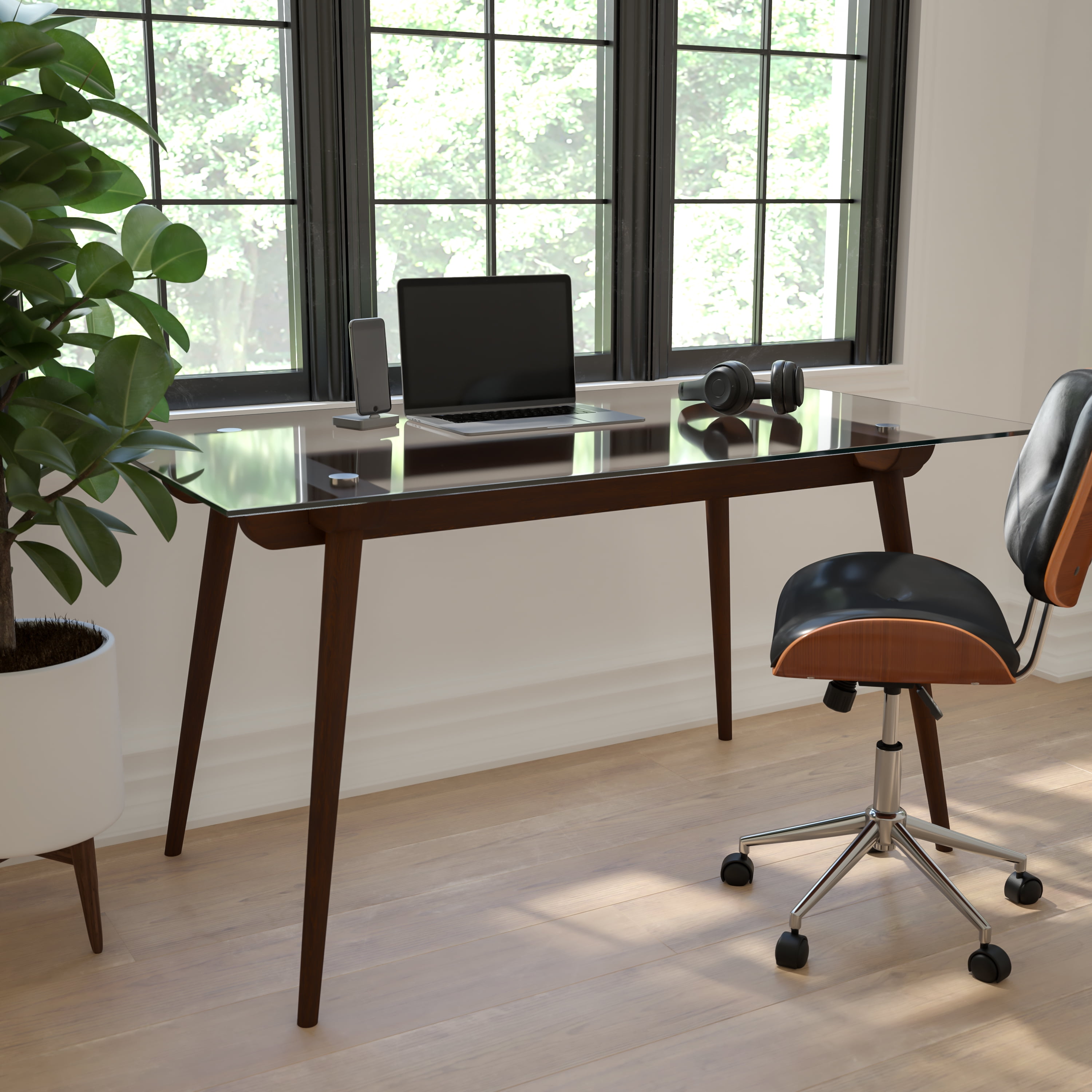 Flash Furniture Meriden 31.5″ x 55″ Rectangular Solid Walnut Wood Table with Clear Glass Top
