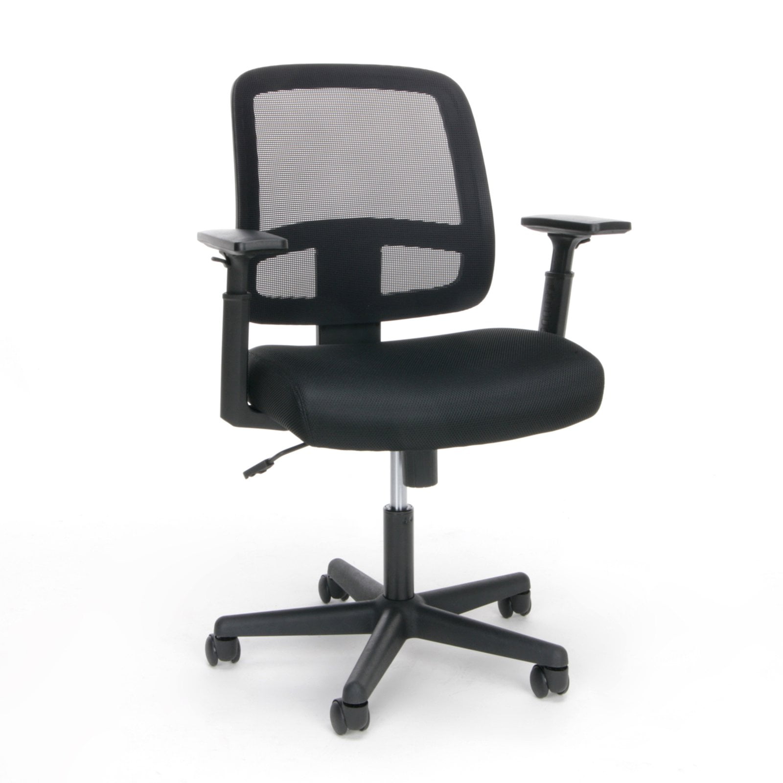 Contemporary Task Office Chair with Triple Paddle Control Mechanism Navy Blue Fabric Upholstery Mid-Back Design with Pillow Top Cushioning Back Height Adjustment Knob positions the lumbar support to reduce back pain, adjusts 2.75″ up and down Infinite-Locking Back Angle Adjustment helps reduce disc pressure by changing the angle of your torso 2-to-1 Synchro Tilt Adjustment tilts the back and seat in unison for a comfortable seating position Tilt Tension Adjustment Knob adjusts the chair’s backward tilt resistance Waterfall Seat reduces pressure on your legs Pneumatic Seat Height Adjustment with 360 Degree Swivel Seat 5-Star Nylon Base with Dual-Wheel Casters