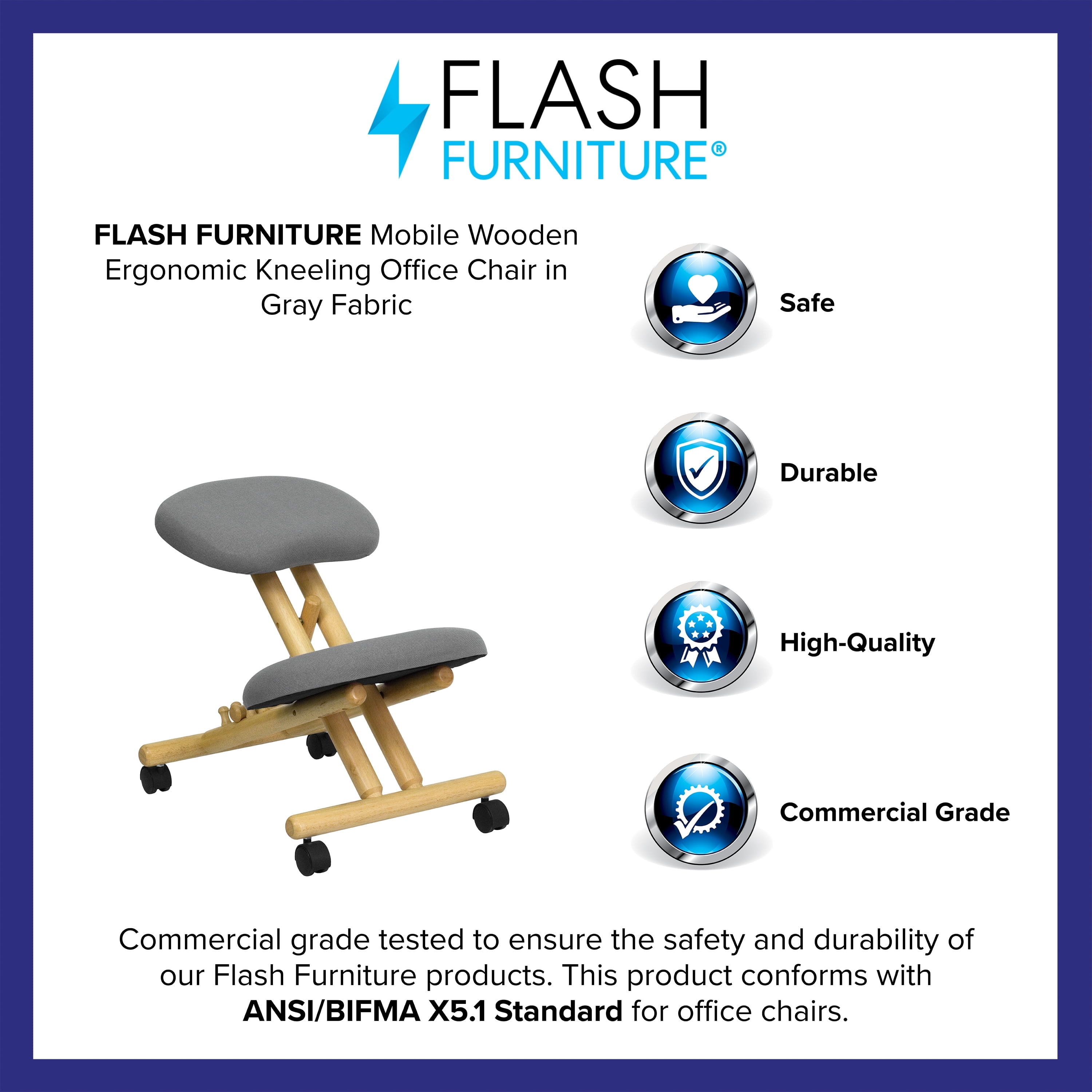 Flash Furniture Mobile Wooden Ergonomic Kneeling Office Chair in Gray Fabric
