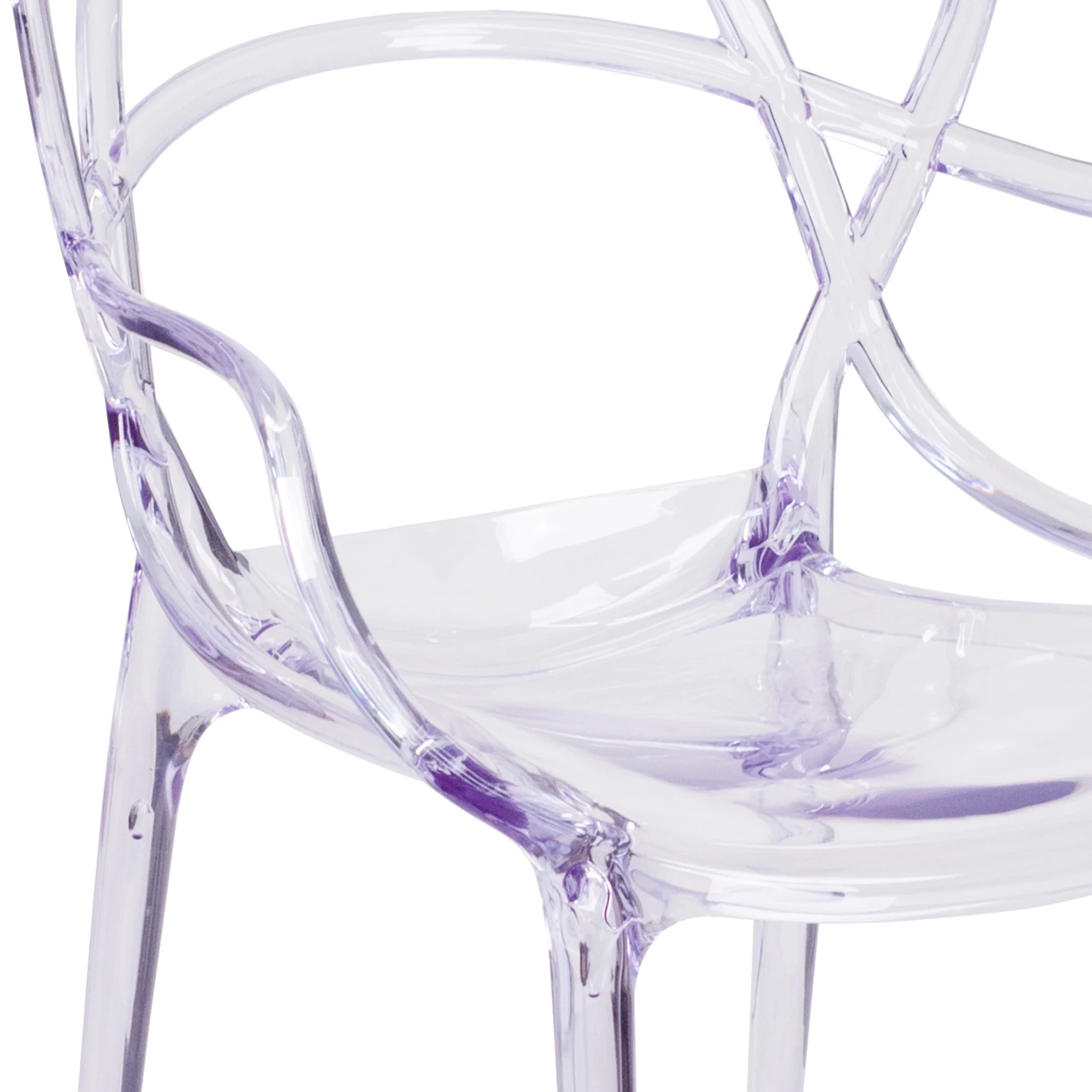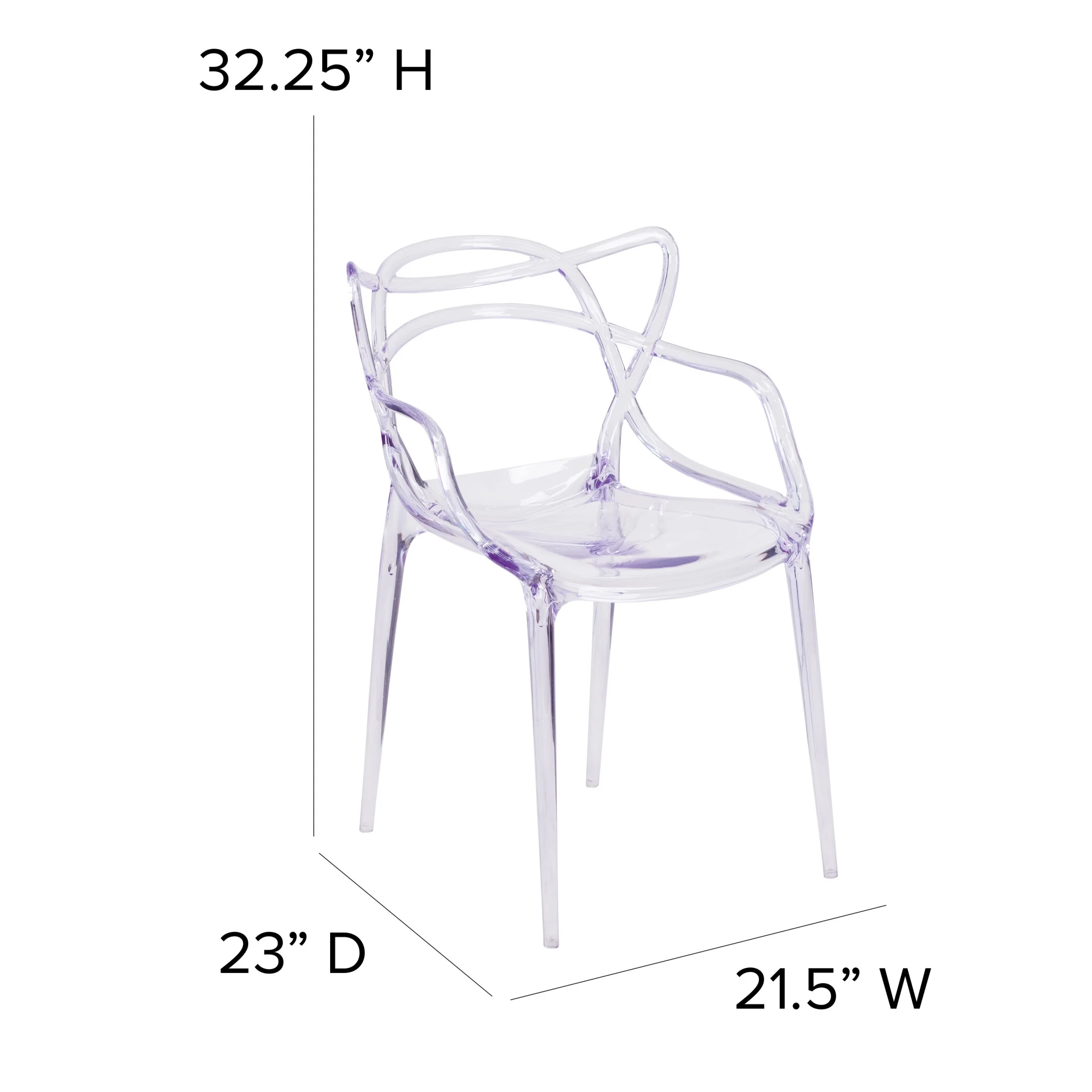 Flash Furniture Nesting Series Adult Molded Stacking Ghost Side Chairs, Set of 4, Transparent Designed for indoor or outdoor commercial use Boasts an elegant design and near invisibility Highlights almost any decor without blocking the view of your artwork and furniture Comfortable and supportive integrated arms and waterfall seat Strong and durable polycarbonate molded structure Protective rubber floor glides protect your floor Chairs can be stacked up to 8 high for compact storage Overall Size: 21.5″W x 23″D x 32.25″H; Seat Size: 16″W x 16″D x 19.25″H; Back Size: 20.5″W x 15″H PRODUCT MEASUREMENTS: Overall Size: 21.5″W x 23″D x 32.25″H; Seat Size: 16″W x 16″D x 19.25″H; Back Size: 20.5″W x 15″H; Arm Size: 26″H from floor; 8″H from seat; No Assembly Required