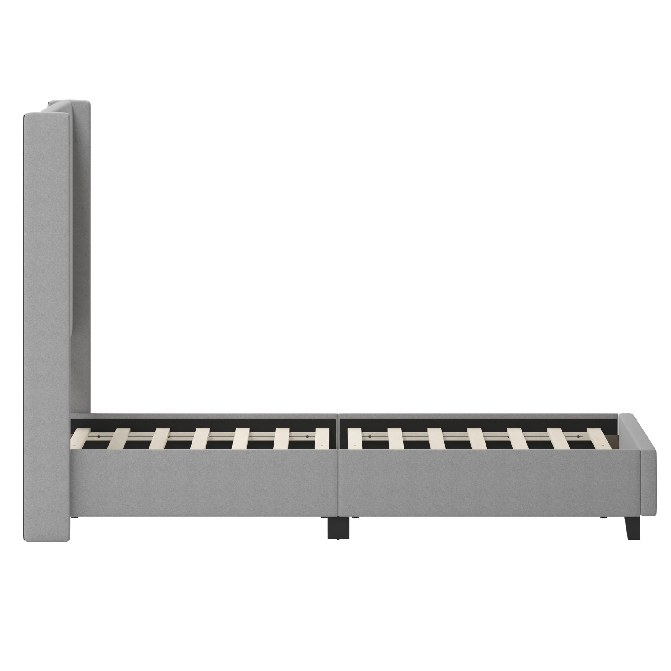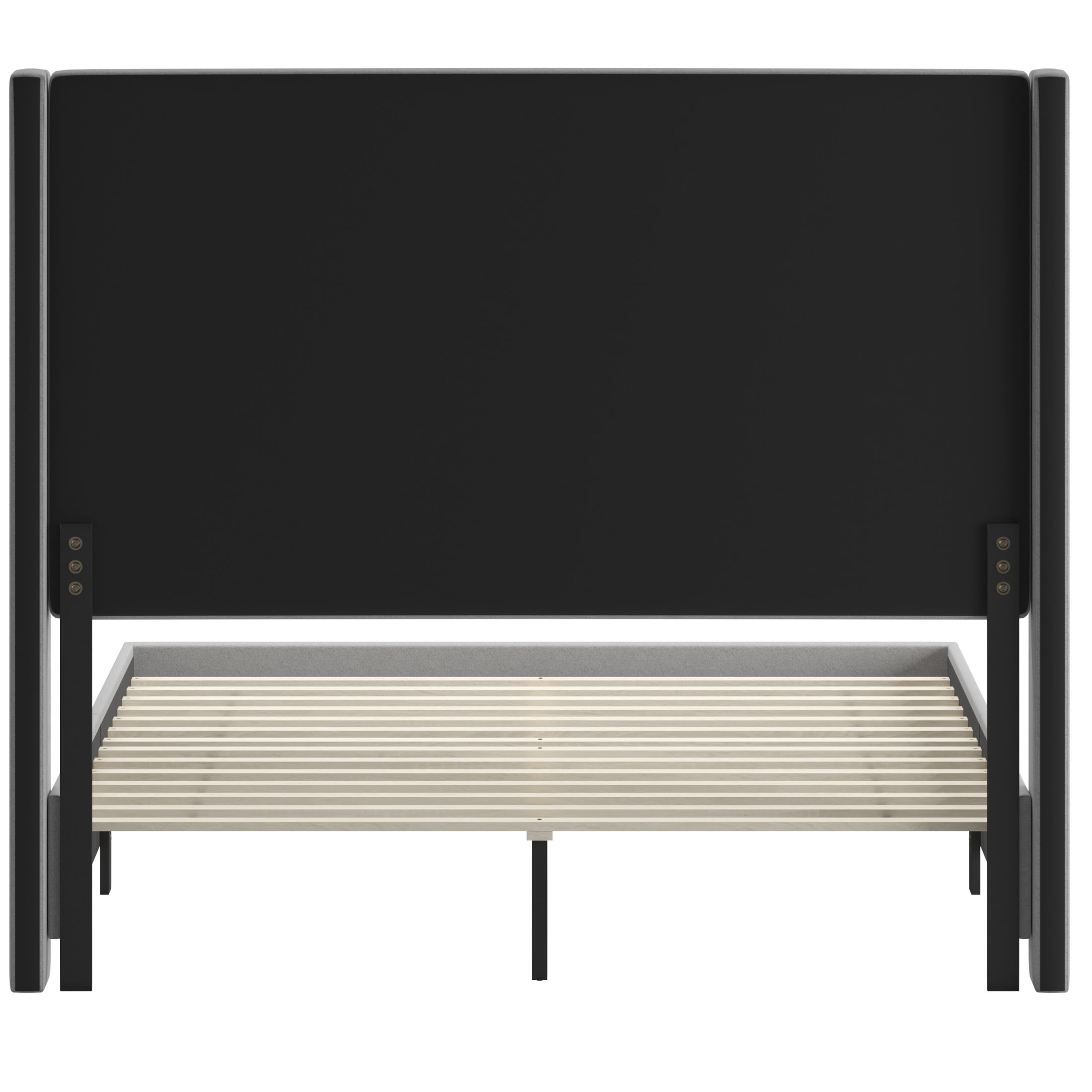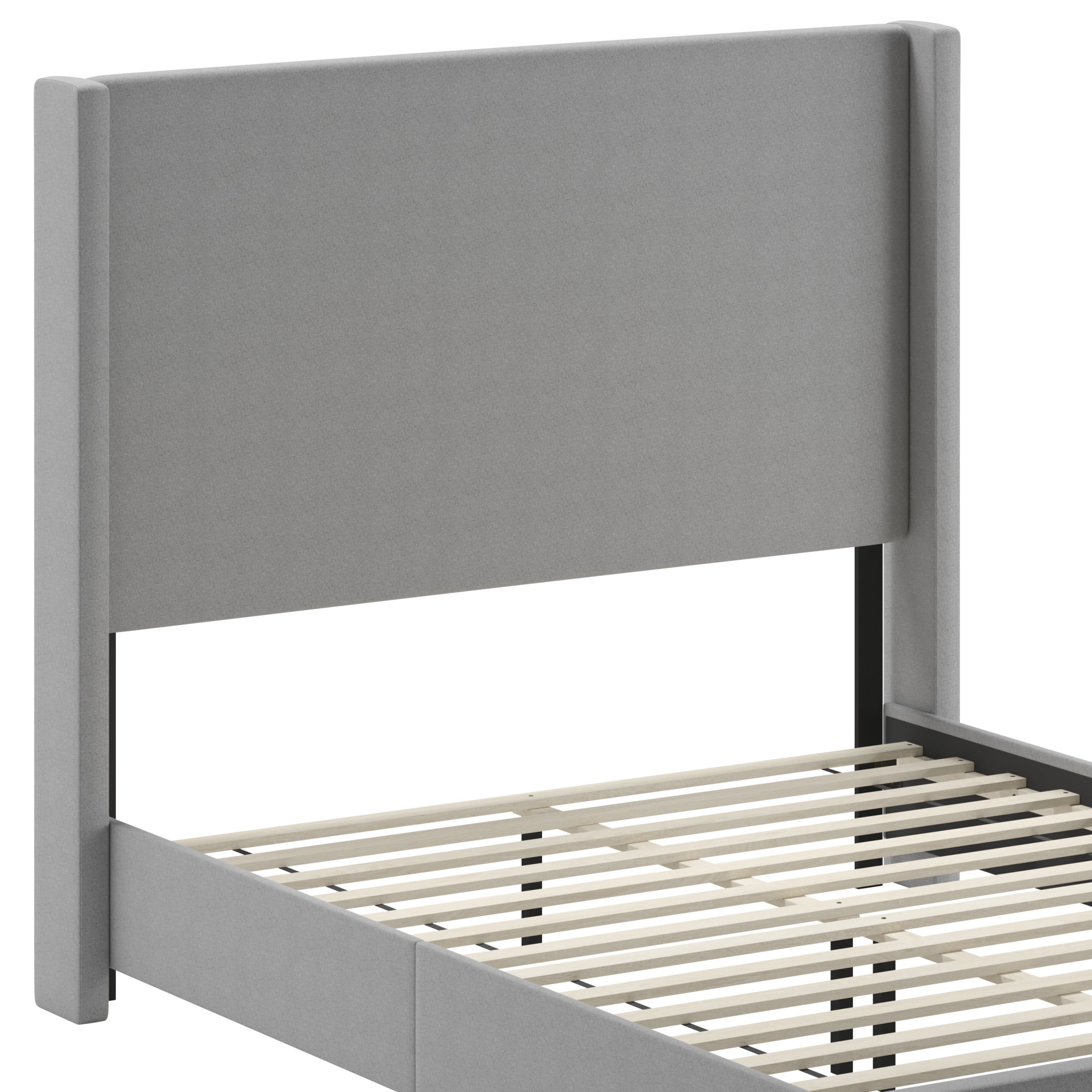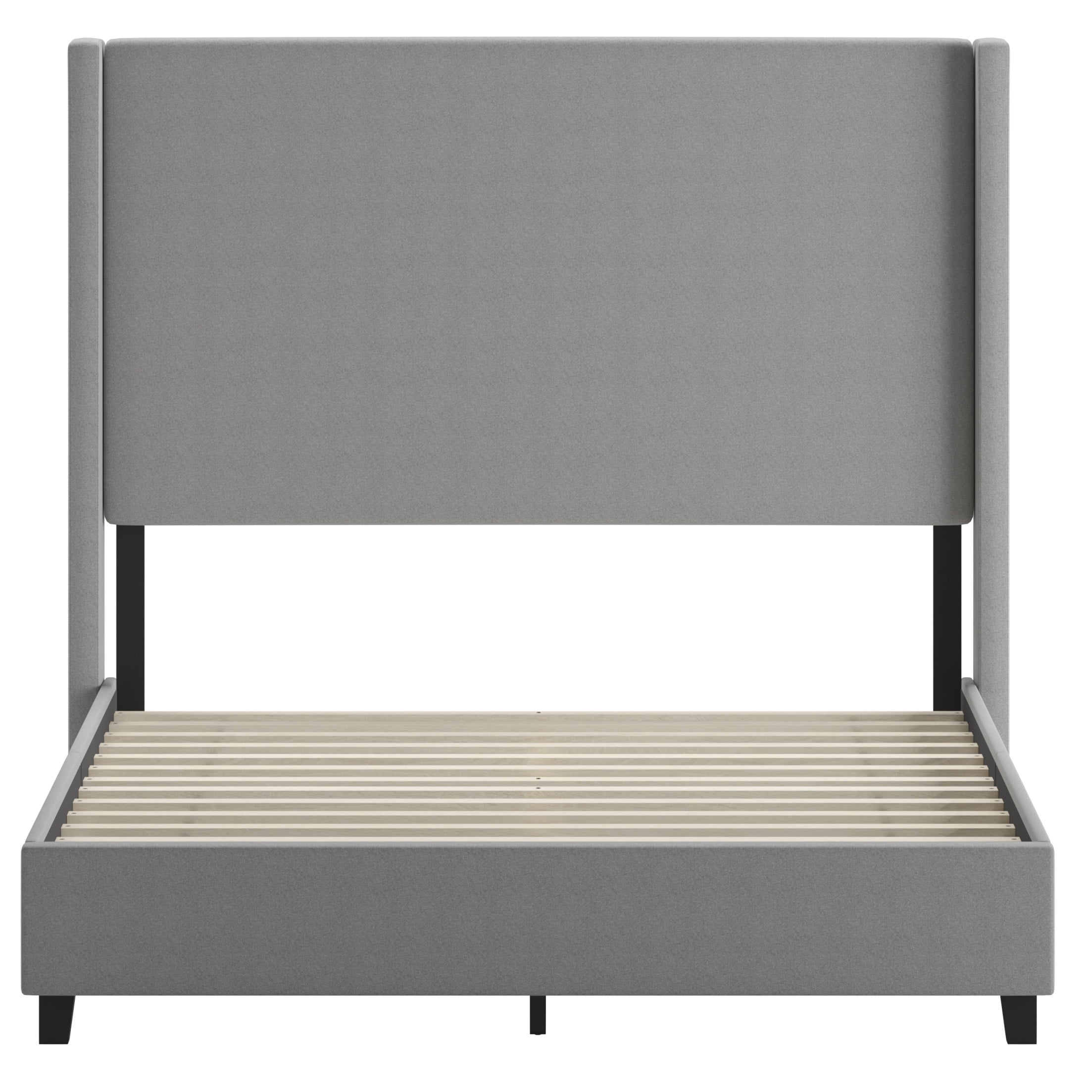 Flash Furniture Quinn Stitched Upholstered Platform Bed, Gray, Queen Modern Upholstered Platform Bed with Wingback Headboard, Queen Elevated Gray Faux Linen Upholstery Foam Padded Headboard and Footboard Lightweight Engineered Wood Framework Holds up to 850 LBS. Static Weight Wooden Support Slats Accommodate Any Mattress, No Box Spring Required 3 Inches of Underbed Storage Adjustable Floor Glides for a Level Sleep Surface Cleans with a Vacuum or Light Brushing Ships in One Box and Assembles Quickly and Easily with Included Tools and Instructions PRODUCT MEASUREMENTS: Overall Size: 66.5″W x 84.5″D x 57″H