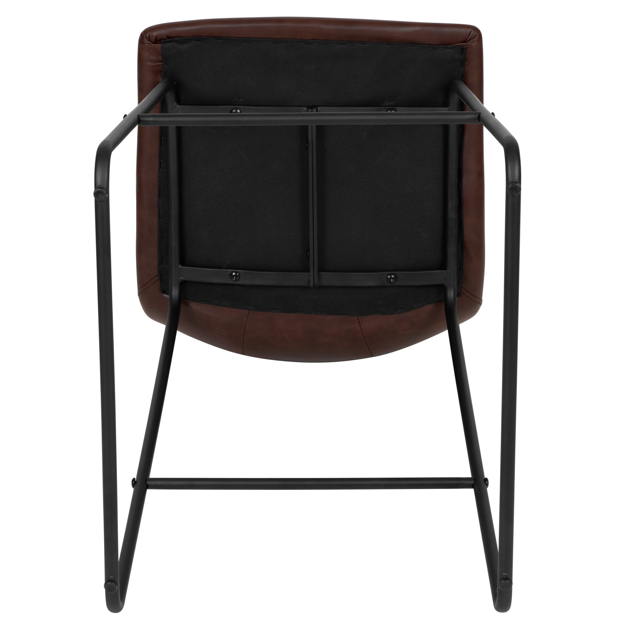 Flash Furniture Reagan 24″ LeatherSoft Counter Height Stools with Footrest, Set of 2, Dark Brown Great for home bars, kitchen islands, or other residential spaces Boasts a neutral two-tone color and soft and durable LeatherSoft upholstery Contoured bucket seat is shaped to provide proper back support Footrest helps relieve pressure from your legs and supports your posture Constructed with a 1.5″ thick tubular sled base Adjustable floor glides protect flooring surfaces Easy assembly in 10 minutes or less with the included tools and illustrated instructions Overall size: 18″W x 22″D x 35.5″H; Seat size: 18″W x 16.5″D x 24″H; Back size: 17″W x 14″H COUNTER-HEIGHT: Measures 18″W x 22″D x 35.5″H with a 18″W x 16.5″D x 24″H seat size and 17″W x 14″H back size; assembles in 10 minutes or less with the included tools and illustrated instructions