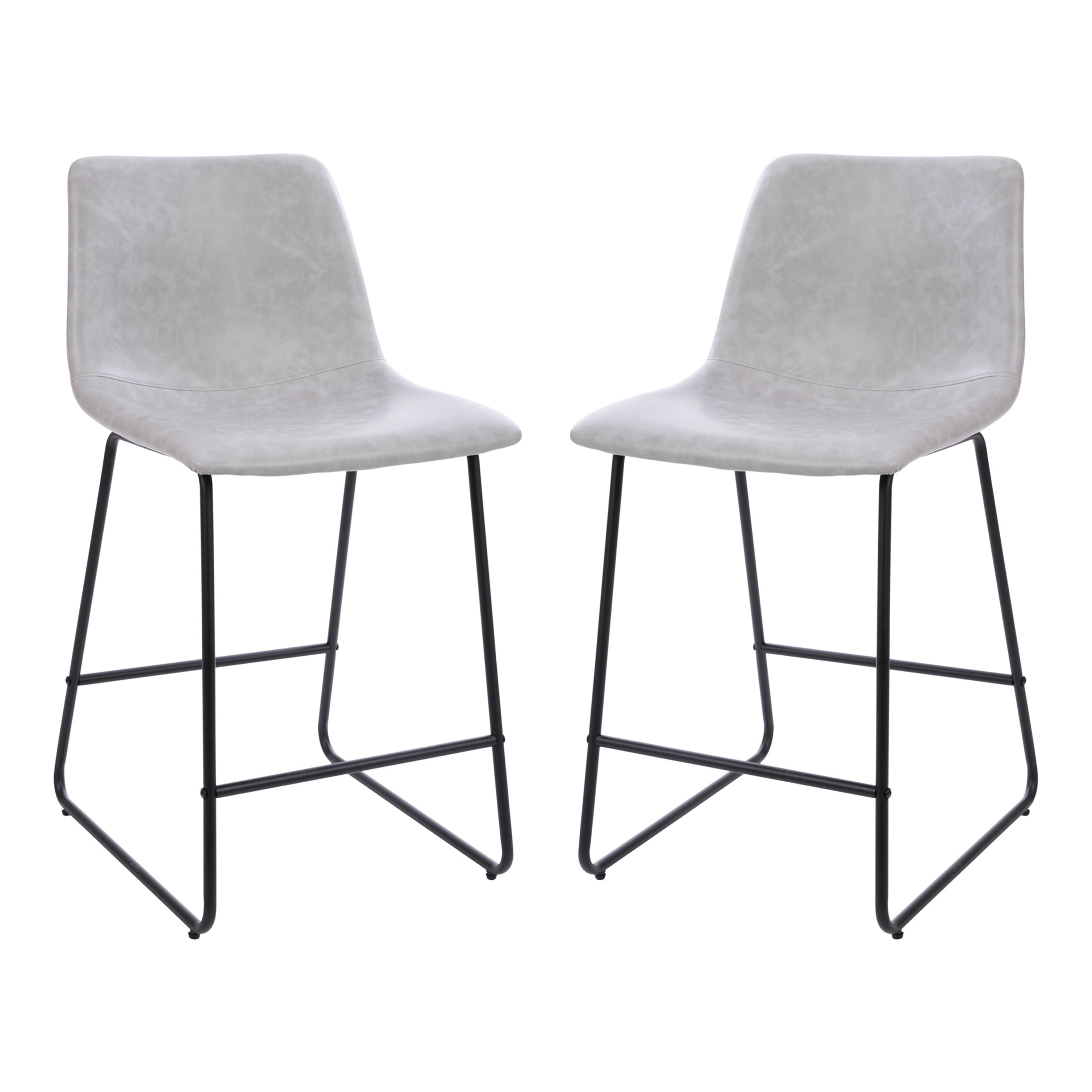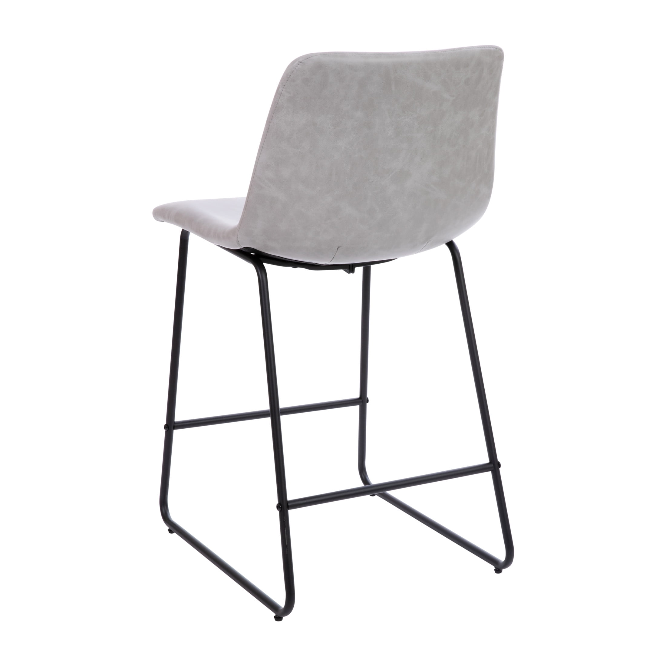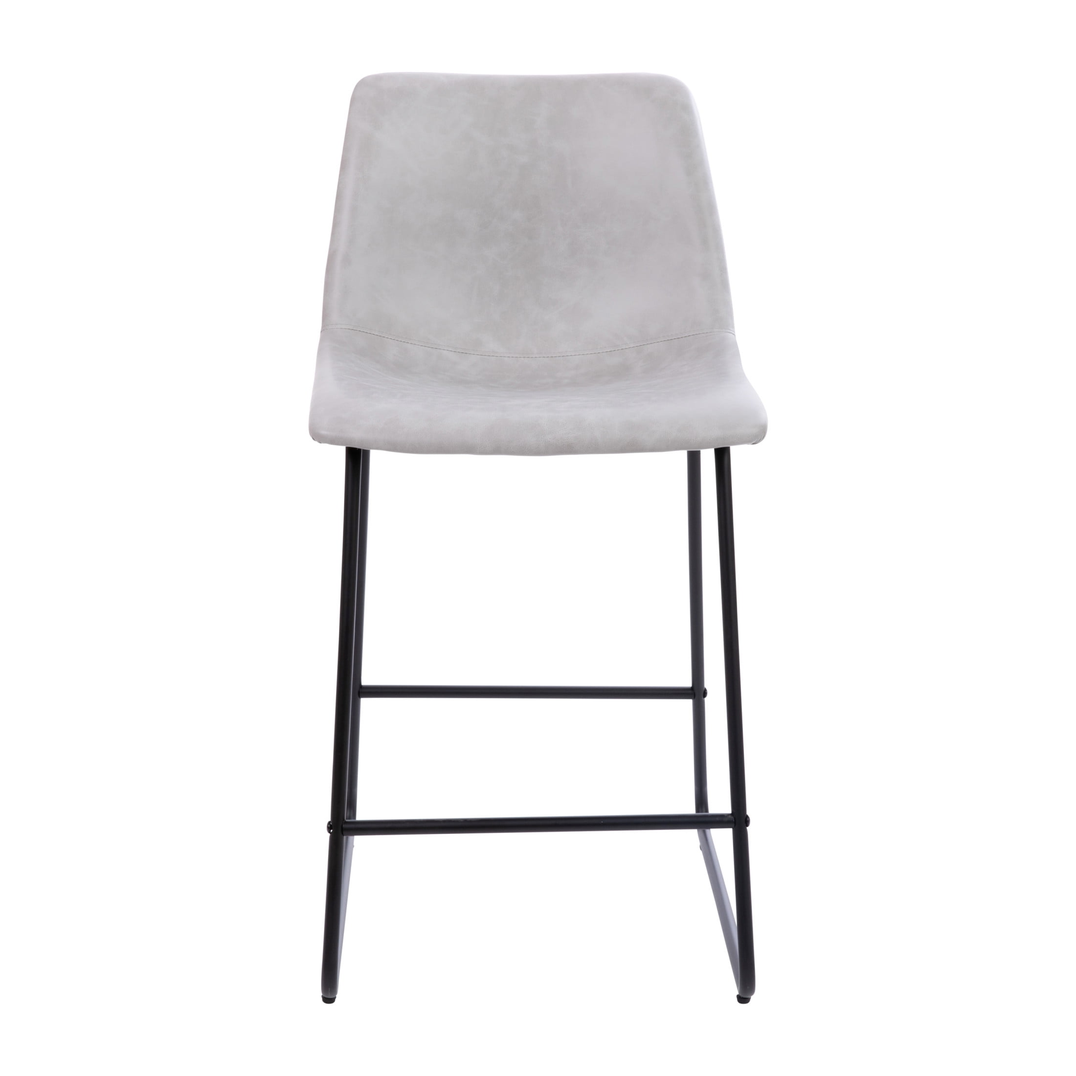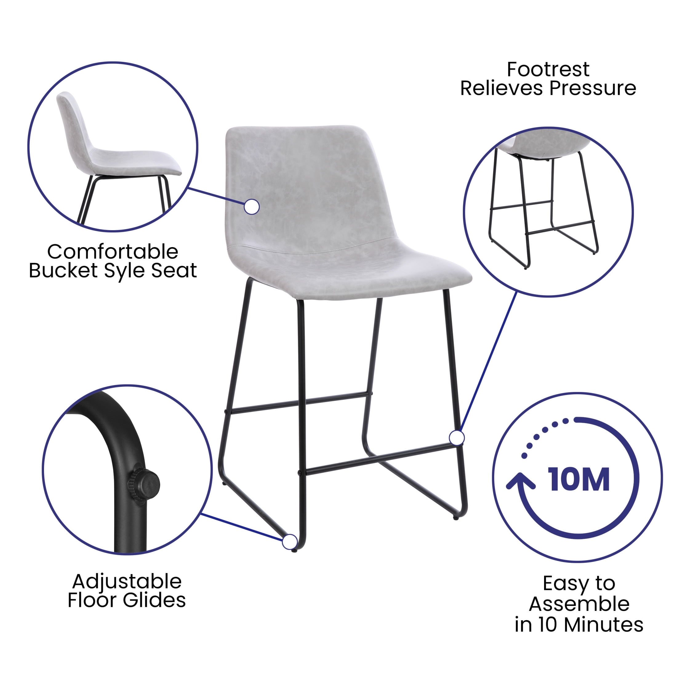 Flash Furniture Reagan 24″ LeatherSoft Counter Height Stools with Footrest, Set of 2, Light Gray Great for home bars, kitchen islands, or other residential spaces Boasts a neutral two-tone color and soft and durable LeatherSoft upholstery Contoured bucket seat is shaped to provide proper back support Footrest helps relieve pressure from your legs and supports your posture Constructed with a 1.5″ thick tubular sled base Adjustable floor glides protect flooring surfaces Easy assembly in 10 minutes or less with the included tools and illustrated instructions Overall size: 18″W x 22″D x 35.5″H; Seat size: 18″W x 16.5″D x 24″H; Back size: 17″W x 14″H COUNTER-HEIGHT: Measures 18″W x 22″D x 35.5″H with a 18″W x 16.5″D x 24″H seat size and 17″W x 14″H back size; assembles in 10 minutes or less with the included tools and illustrated instructions