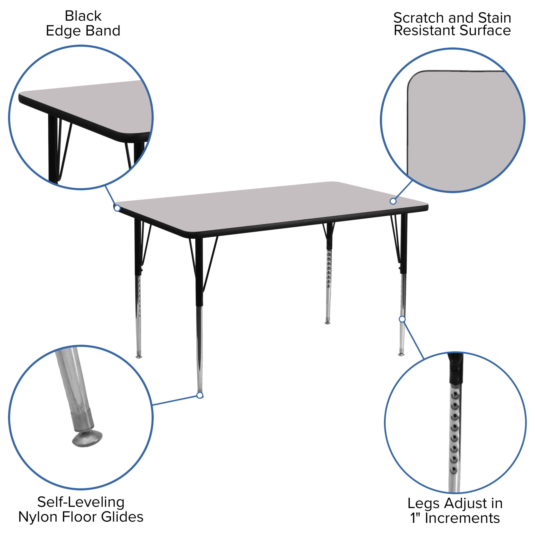 Flash Furniture Rectangular Plastic Adjustable Height Classroom Activity Table, 24″ W x 48″ L, Gray