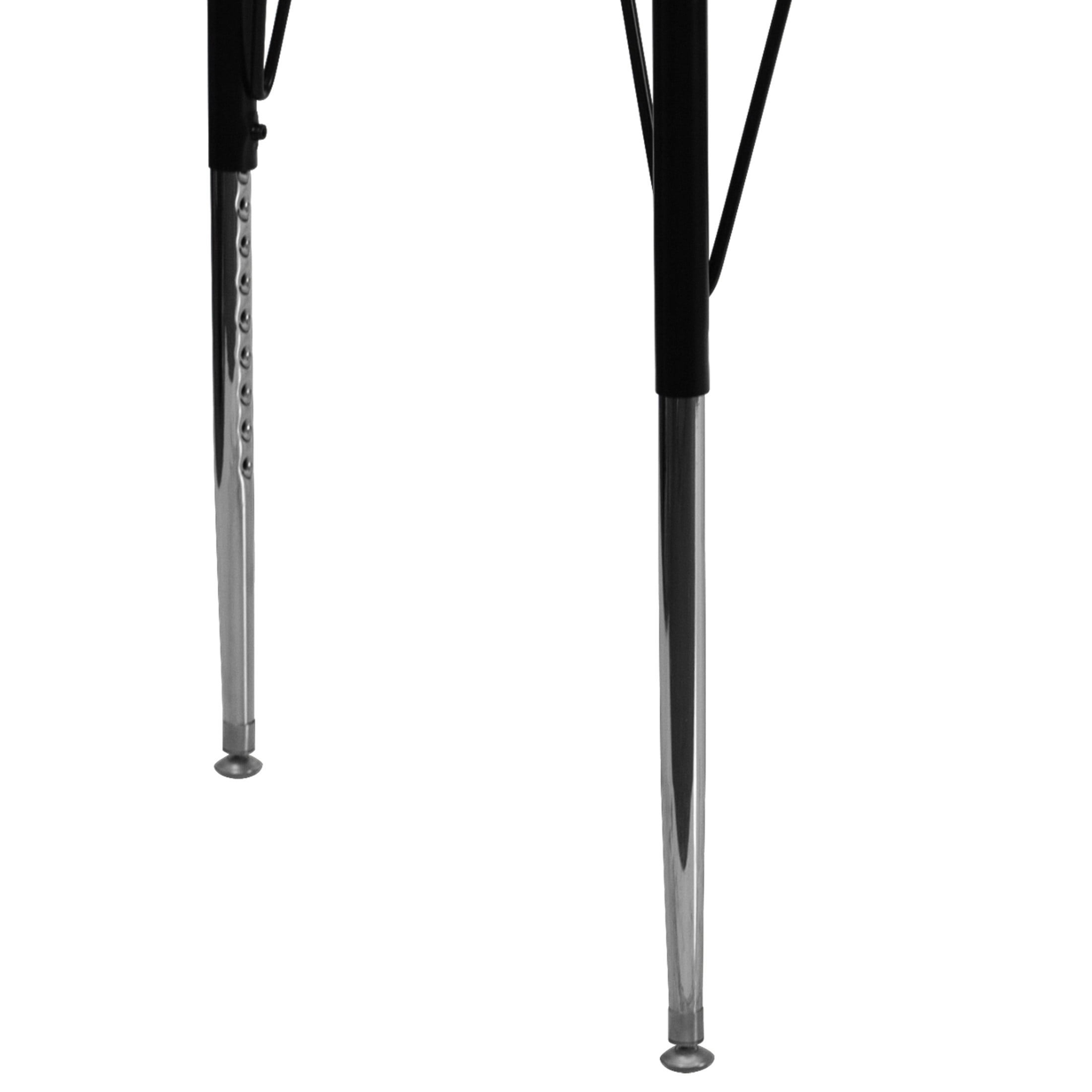 Amplify any classroom or workspace with the functionality and convenience of the Flash Furniture Adjustable Activity Table. This versatile plastic activity table offers endless possibilities in your home or classroom and is great for learning, playing, arts and crafts, meal time, homework, and much more. In addition to classroom and school use, this versatile table can also be used for corporate training centers, dining rooms, homes, or multi-use facilities that host many assorted activities. Featuring sturdy adjustable legs, this classroom table gives you the flexibility to raise or lower its height a full 9″ in 1″ increments to accommodate children of all ages, from 1st grade to adult. Convenient self-leveling nylon floor glides on the bottom of each leg help protect flooring surfaces from damages when you need to move the activity table around the classroom. Made with a 1.125″ thick thermal fused scratch and stain-resistant laminate top with black edge band and durable 16-gauge tubular steel legs, this adjustable height activity table withstands years of quality use.