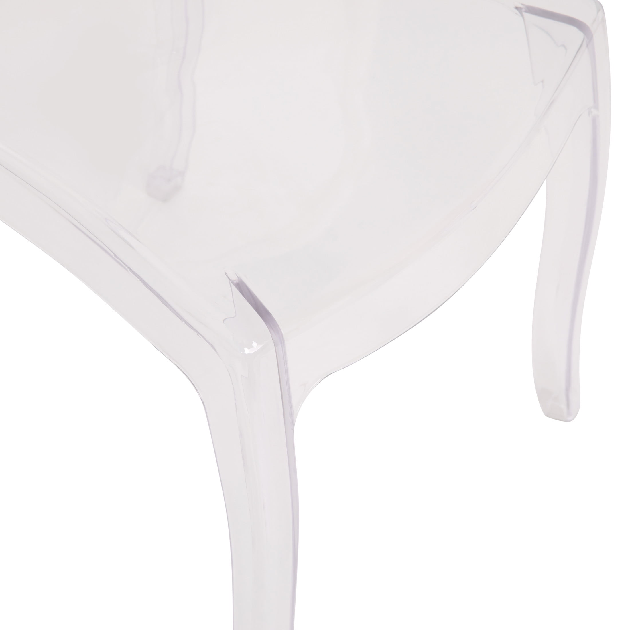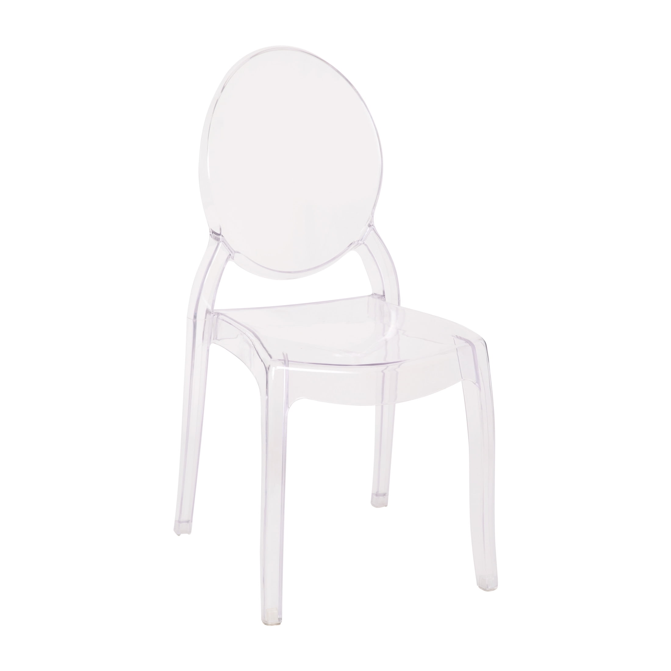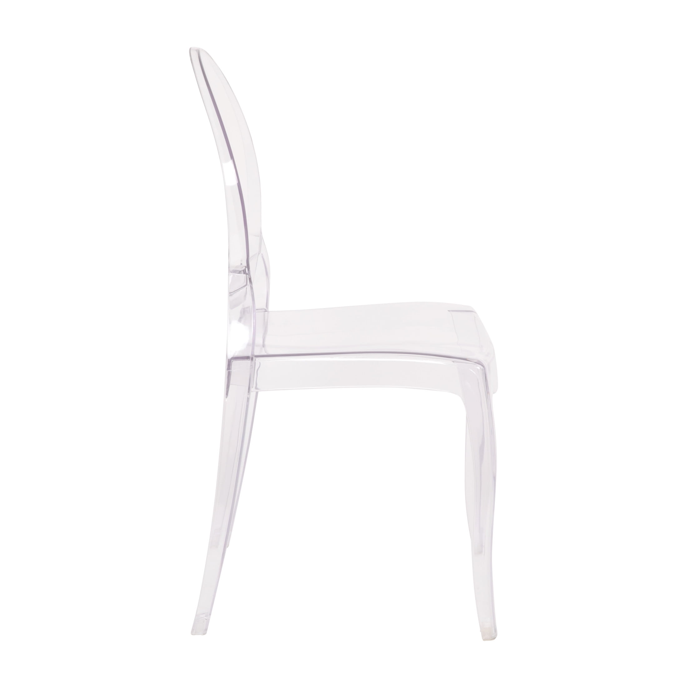 Flash Furniture Revna Series Ghost Chair, Set of 4, Clear Plastic Set of 4 Crystal Clear Resin All Occasion Armless Ghost Chairs with Extra Wide Seats Polycarbonate Molded Structure is shock, scratch and water resistant Designed for Commercial Use but suitable for home use Seat Size: 16.375″W x 18″D x 19″H Accommodates up to 400 LBS. Static Weight Capacity Stackable up to 4 High for storage, transport, or floor cleaning Soft Fixed Plastic Floor Glides protect hard indoor flooring surfaces Suitable for Indoor and Outdoor Use No Assembly Required for instant use Multipurpose stack chair for banquet venues, dining rooms, or salons PRODUCT MEASUREMENTS: Overall Size: 17″W x 20.5″D x 37.25″H; Seat Size: 16.375″W x 18″D x 19″H; Back Size: 14.75″W x 20″H; No Assembly Required