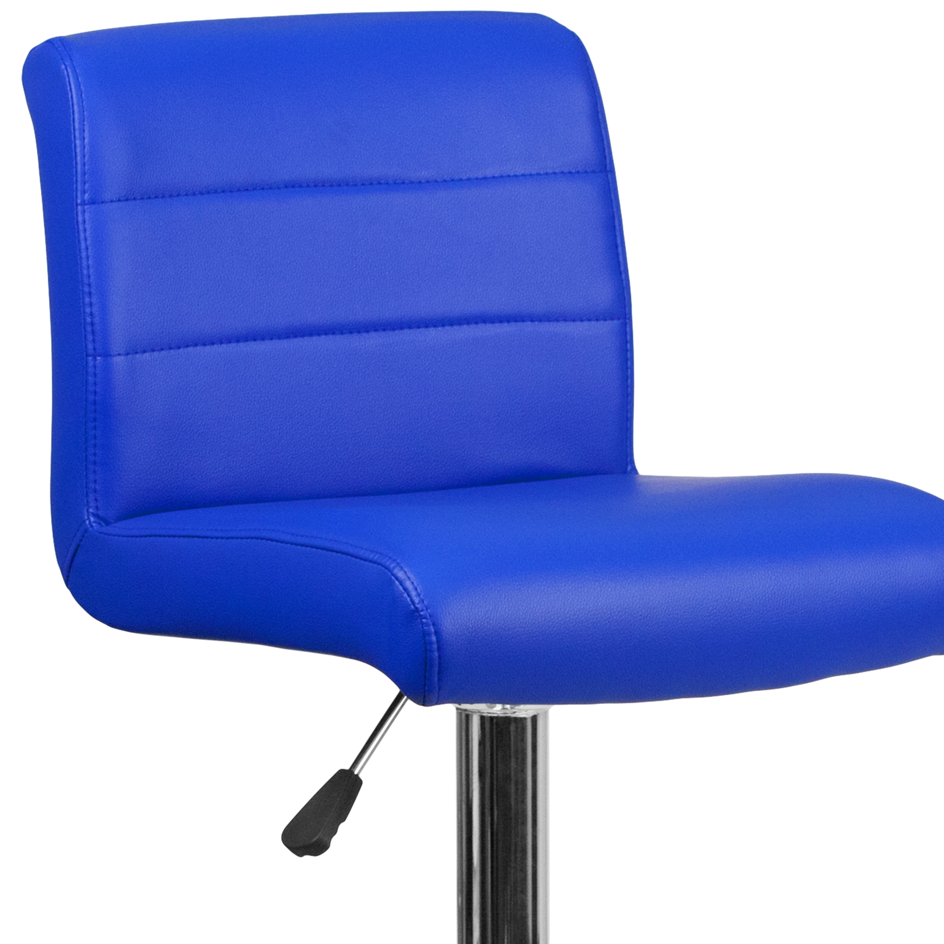 Flash Furniture Scott Contemporary Blue Vinyl Adjustable Height Barstool with Rolled Seat and Chrome Base
