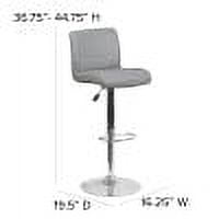 Flash Furniture Scott Contemporary Gray Vinyl Adjustable Height Barstool with Rolled Seat and Chrome Base Contemporary Style Stool Mid-Back Design Gray Vinyl Upholstery Exposed Embellished Stitching On Back, CAL 117 Fire Retardant Foam Height Adjustable 360 Degree Swivel Seat with Gas Lift Waterfall Seat reduces pressure on your legs Seat Adjusts from Counter to Bar Height Footrest, Chrome Base Base Diameter: 17.625″ Designed for Residential Use Only PRODUCT MEASUREMENTS: Overall Size: 16.25″W x 19.5″D x 36.75-44.75″H; Seat Size: 16.25″W x 14.75″D x 26.25-34.5″H; Back Size: 16.25″W x 11.5″H