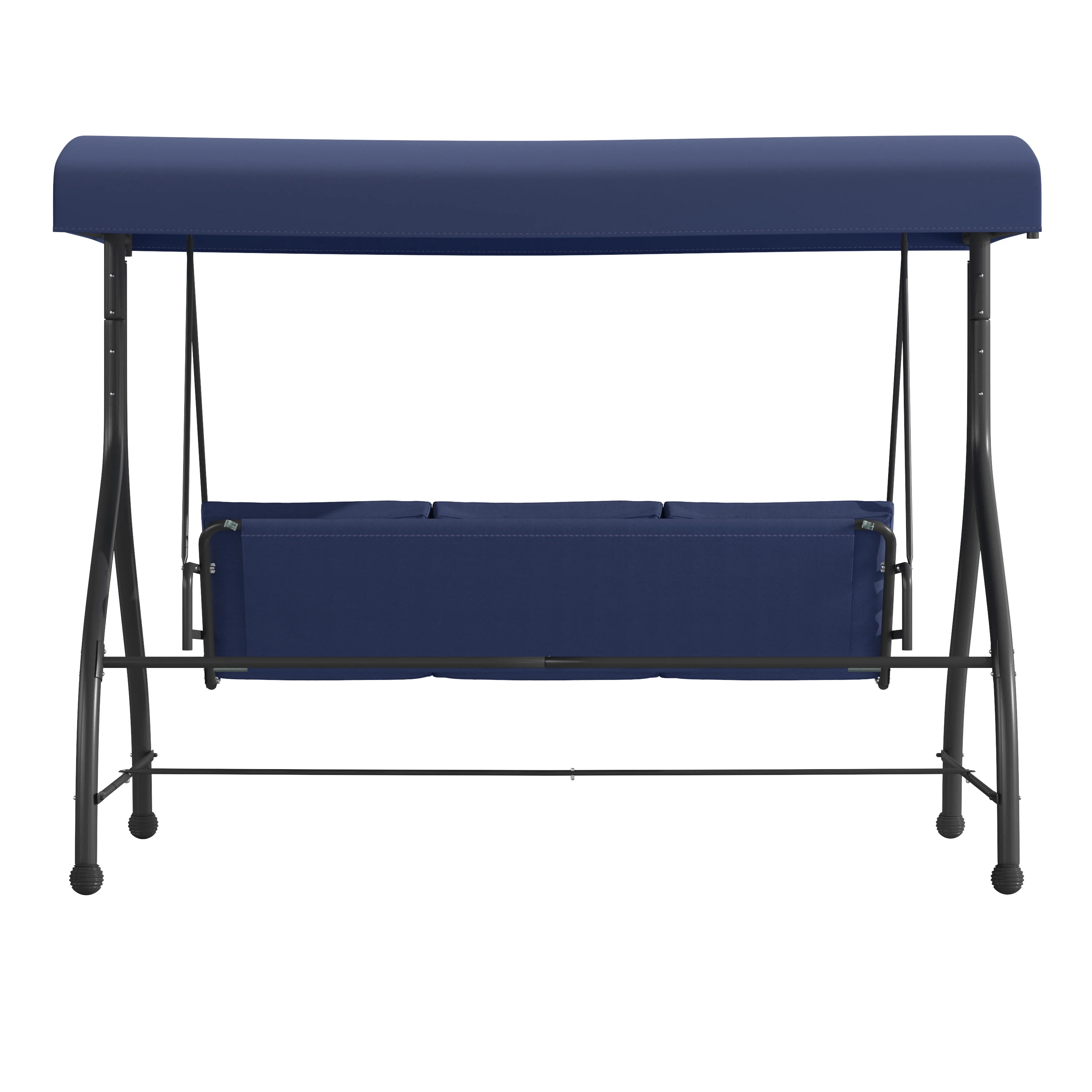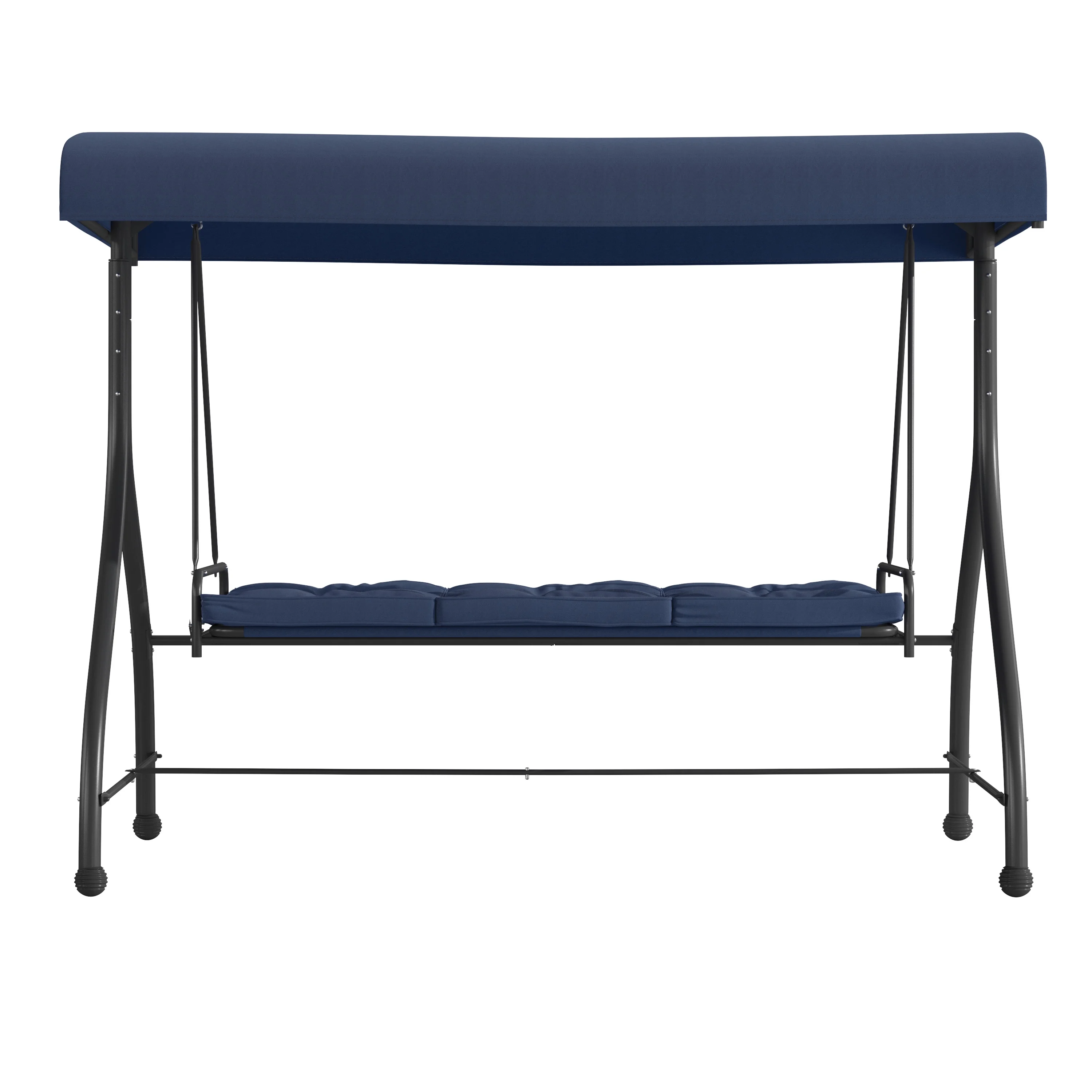 Flash Furniture Tellis 3-Seat Outdoor Steel Converting Patio Swing Canopy Hammock with Cushions / Outdoor Swing Bed (Navy) Outdoor Patio Swing Set for Porch or Yard 87.25″W x 45.75″D Adjustable Polyester Canopy provides UV Ray Protection Weight Capacity: 800 lbs. Seats Up to 3 Adults Comfortable Seat and Back Cushions are removable Convertible Flat Bed – back reclines and locks to frame prohibiting swinging motion once locked Fold-Down Bed Size: 68″W x 40.5″D x 2″H Weather-Resistant Steel Frame with Plastic Floor Glides Use a water based cleaner to remove dirt Ideal for poolside, backyard and patio entertaining PRODUCT MEASUREMENTS: Overall Size: 86″W x 48″D x 68″H