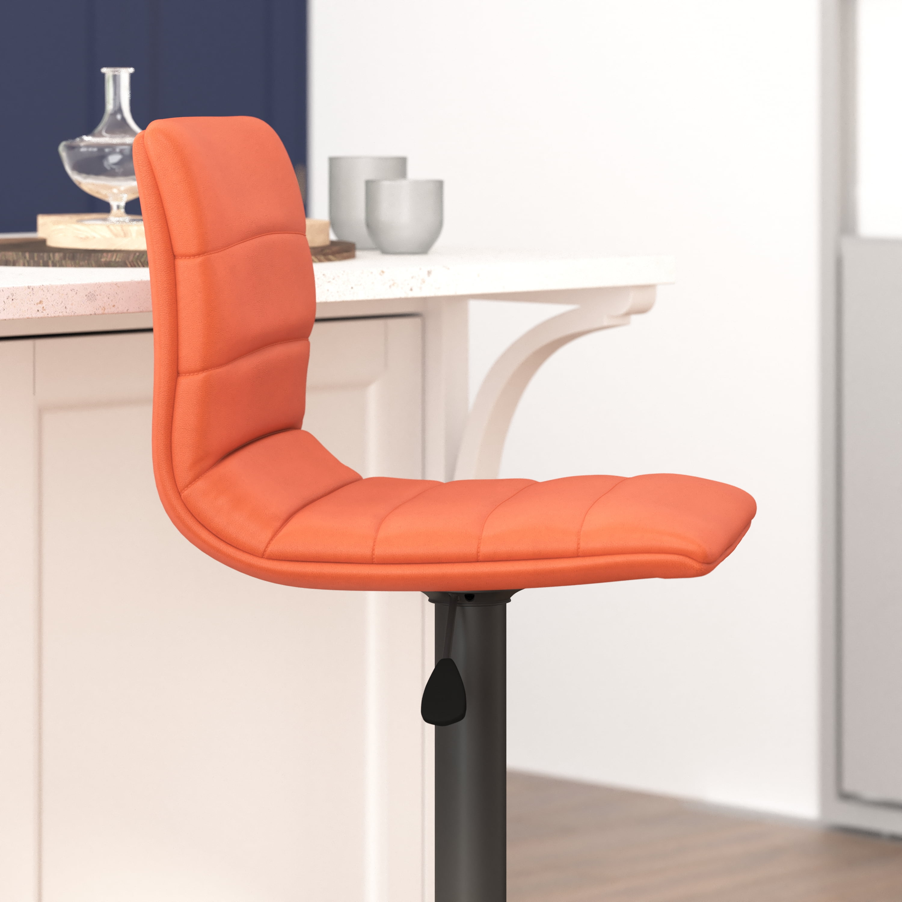 Provide the perfect pop of color and on-trend appeal in your home with this cognac adjustable barstool. This modern style stool has a gracefully contoured shape and mid-back design that offers the perfect amount of support guests. The armless design brings you closer to your dining table, card table or basement bar. This dual-use stool gives you two chairs for the price of one. The height adjustable swivel seat adjusts from counter to bar height with the handle located below the seat. The pedestal base supports up to 330 lbs. weight capacity to accommodate most users while the black footrest supports your feet and promotes good posture. Spills and other pesky messes clean up quickly with water and a neutral detergent. To help protect your hard flooring surfacess, the base features an embedded plastic ring. Purchase several of these adjustable stools to ensure you always have plentiful seating for guests.