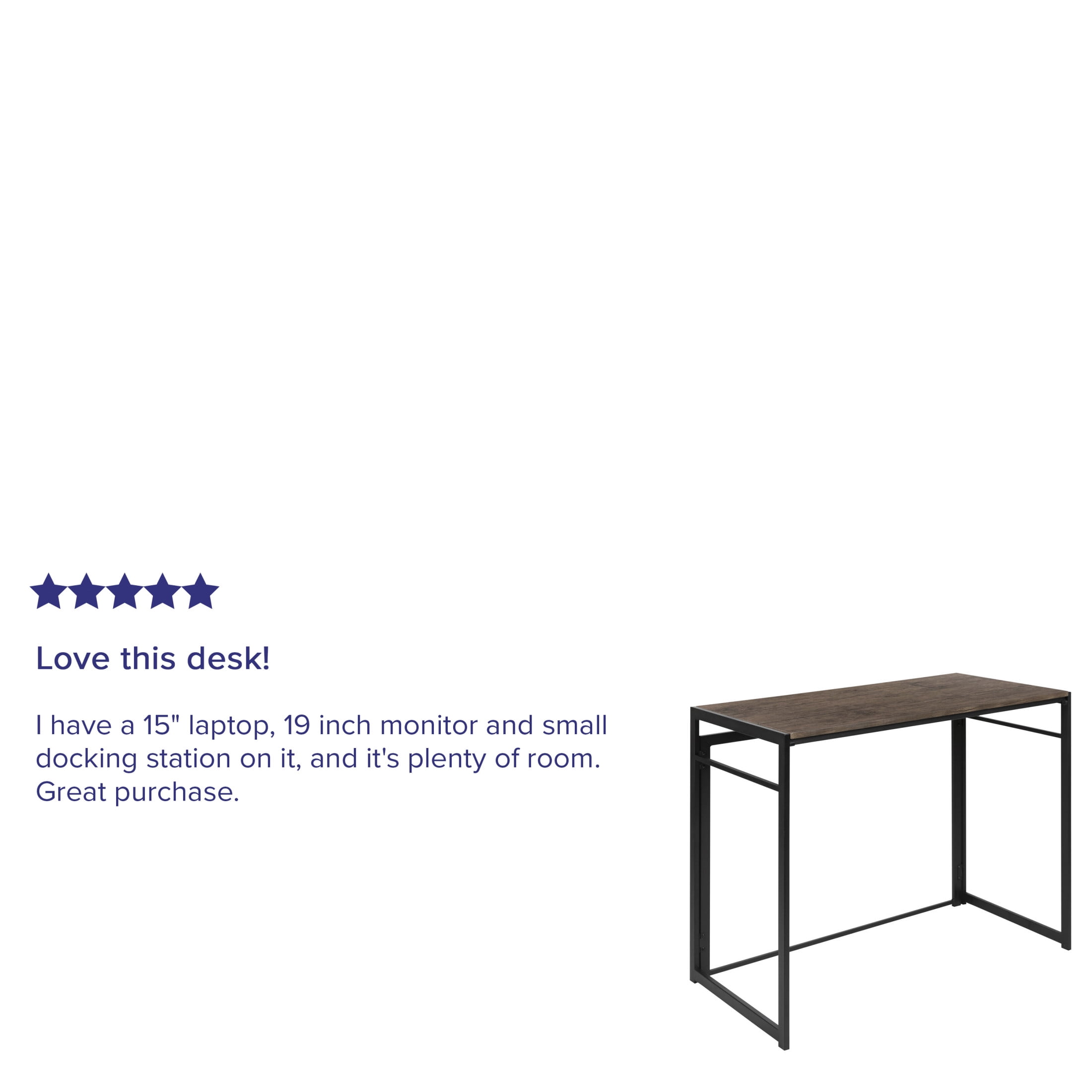 Flash Furniture Walker Rustic Home Office Folding Computer Desk – 40″ Industrial Folding Desk for Laptop or Desktops Flexible: Remote Learning Desk or Work from Home Setup Desktop Size: 39.5″W x 20″D x .5″ Thick Folded Size: 39.5″W x 2.25″D x 20″H Black Powder Coated Frame Finish with Bracing Space-Saving Design: setup anywhere around the home and fold when not in use Ready-To-Use – No Assembly Required – Unfold frame and snap desktop into place Setup your work from home office or student desk with this foldable desk PRODUCT MEASUREMENTS: Overall Size: 39.5″W x 20″D x 30″H; Folded Size: 39.5″W x 2.25″D x 20″H; No Assembly Required