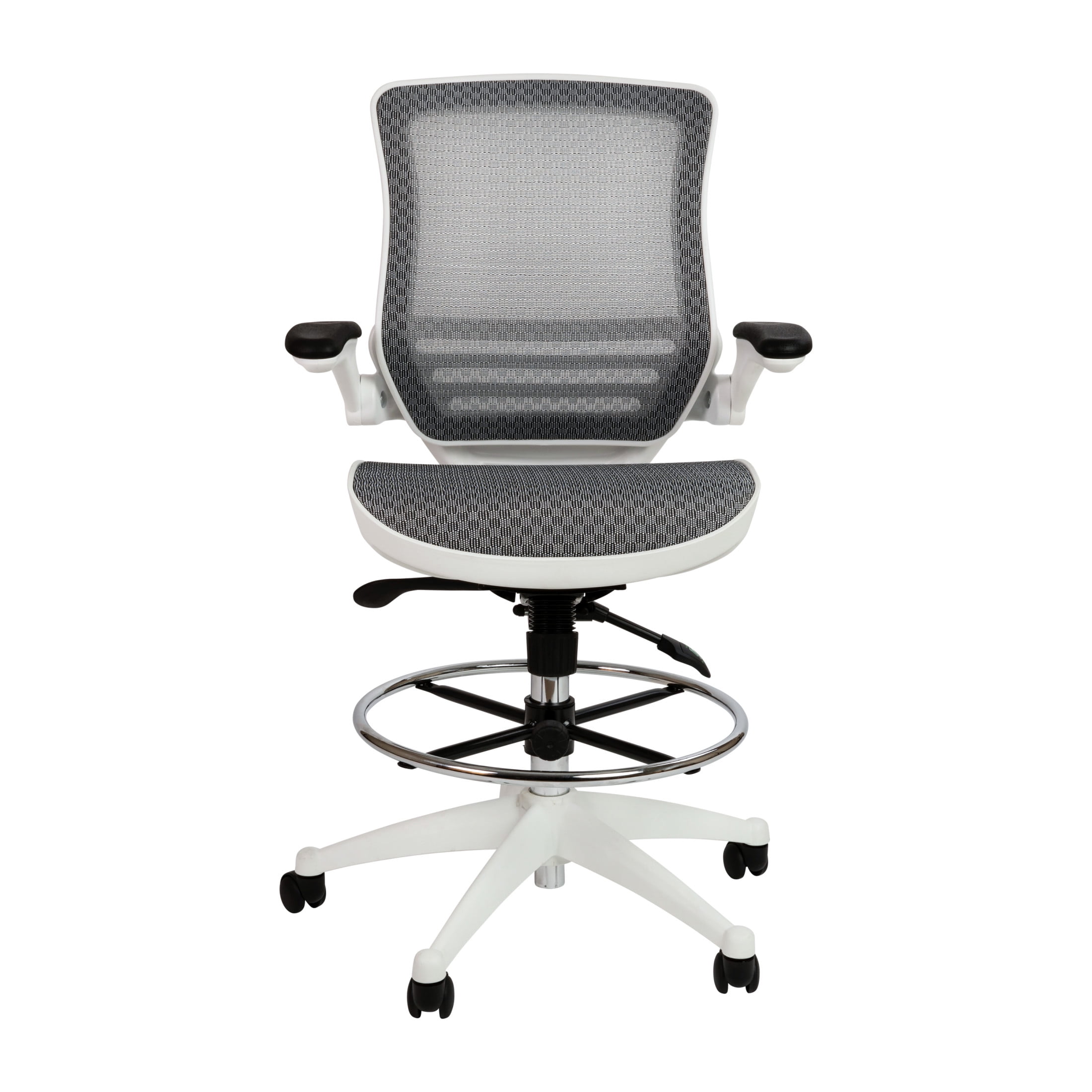 When you spend more time at your desk than anywhere else it’s time to invest in a top-notch chair. This high quality drafting chair is constructed with a higher seat range to reach work surfaces that are above the average desk height, like counters and bars. Designed for artists, engineers, lab technicians and other creative work professionals, this tall drafting chair provides enhanced back support to maximize productivity. Featuring breathable mesh material and extra padding throughout, this drafting stool will help keep you cool and comfortable during extended work sessions. Our adjustable-height drafting chair effortlessly raises and lowers to your desired height via an easy-to-operate pneumatic adjustment lever while the integrated chrome foot ring around the base provides a comfortable place for your feet to rest. The waterfall front seat edge helps reduce pressure on the lower legs while increasing circulation. Padded armrests flip up and out of the way as needed, allowing you to quickly switch between tasks with greater flexibility. If you work at a non-traditional surface height, a comfortable chair is a must have so the multiple adjustment features in this office drafting chair will be a welcome addition. Synchro-tilt control lets the chair’s seat and back recline at different rates, increasing the angle between your torso and thighs for an ideal sitting position and the contoured back with lumbar support may help to alleviate strain on your spine and back muscles. 360 degree swivel paired with dual-wheel, easy-rolling casters allows you effortless mobility to maximize your workspace. Spills clean up easily with a solvent based cleaning agent, no water required. Whether you go to the office or work from home, this mid-back mesh chair offers a practical and attractive seating solution to get you comfortably through your workday.