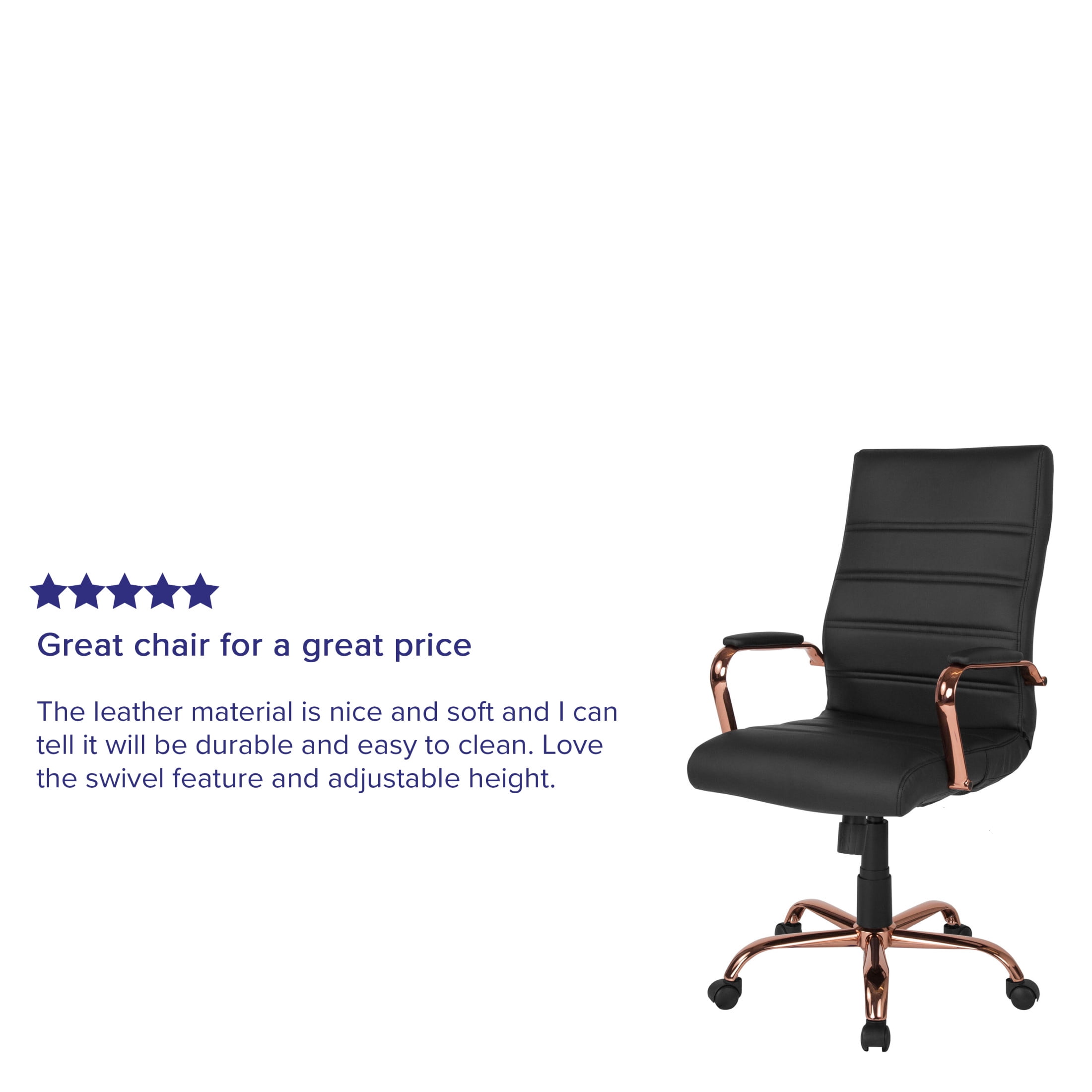 Flash Furniture Whitney High-Back Swivel LeatherSoft Desk Chair with Armrests, Black/Rose Gold