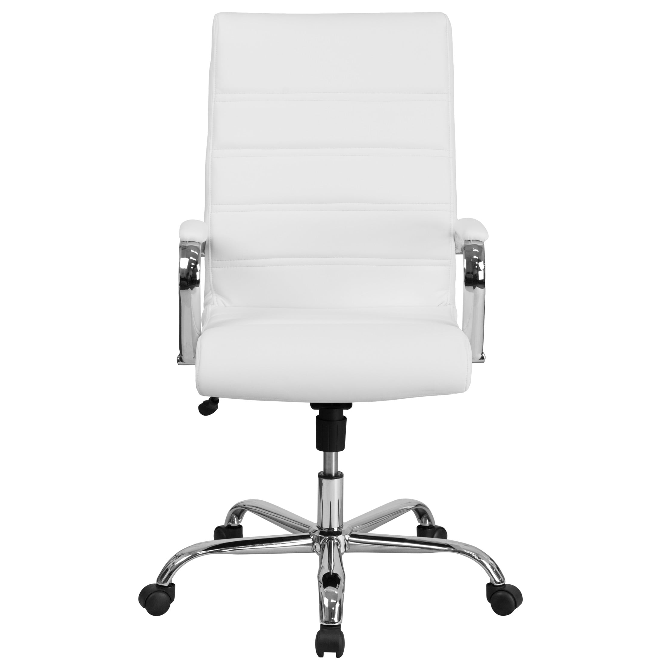 Flash Furniture Whitney High-Back Swivel LeatherSoft Desk Chair with Armrests, White/Chrome