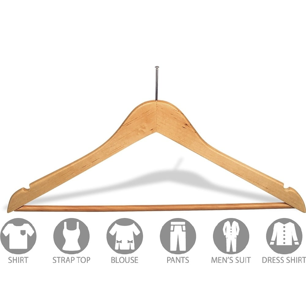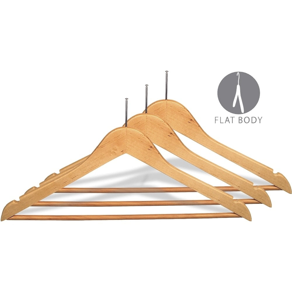 Flat Anti-Theft Clothes Hanger with P-Nail, Security Hangers for Retail and Hospitality Walnut w/ Chrome Clips Box of 50