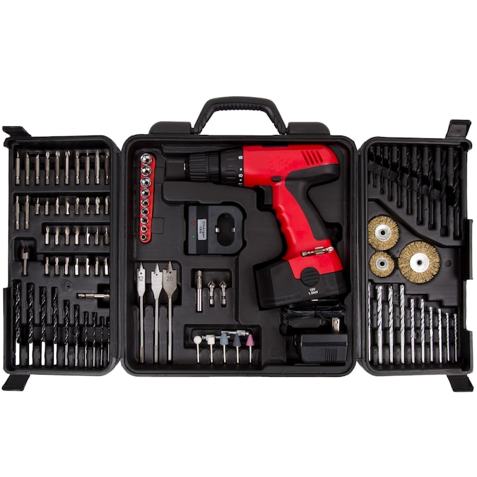 • PRODUCT DETAILS – Dimensions: Carry Case: (L) 13” x (W) 4.25” x (H) 14”; Weight: 10lbs; Drill Voltage: 18V; Battery: 1500 mAh Ni-Cd; Color: Red and Black.