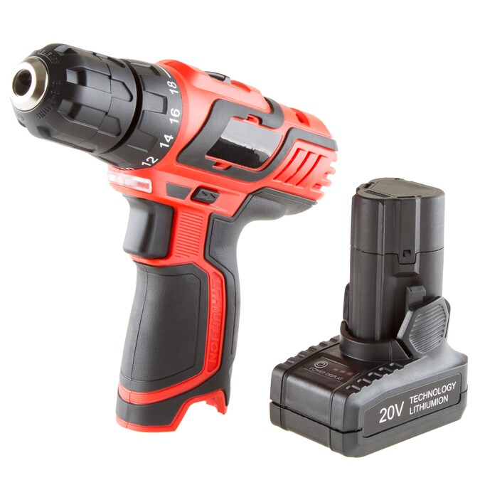 - CORDLESS DRILL SET – This 20V power drill features a comfort grip handle, 2 speeds with 18 clutch settings, and a built-in LED to illuminate projects; The hand drill comes with a lithium-ion battery and charger that holds a charge for up to 18 months.