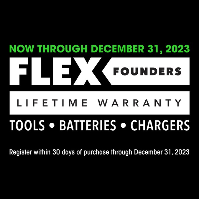 - FLEX LIMITED LIFETIME WARRANTY – Register your new FLEX tool, battery, or charger within 30 days of purchase through December 31, 2024 to receive a limited lifetime warranty