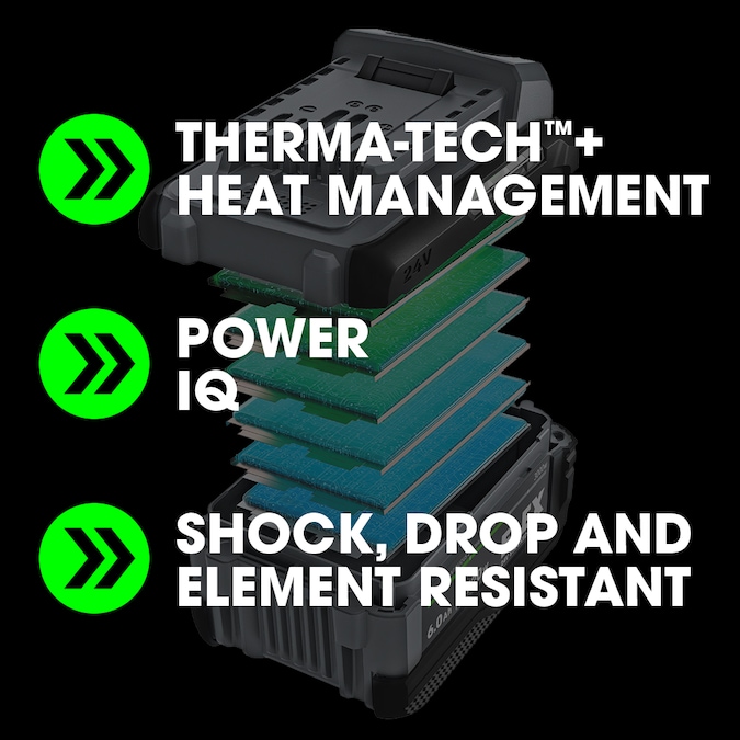 The FLEX 24V Stacked Lithium battery platform offers industry-dominating power and performance. Its intelligent power management enables higher discharging, and it combines THERMA-TECH™+ cooling technology with high-performance heat management protection to offer faster charging and a longer battery life to power through the workday. Protected by the FLEX Limited Lifetime Warranty when registered within 30 days of purchase at registermyFLEX.com through December 31, 2024.