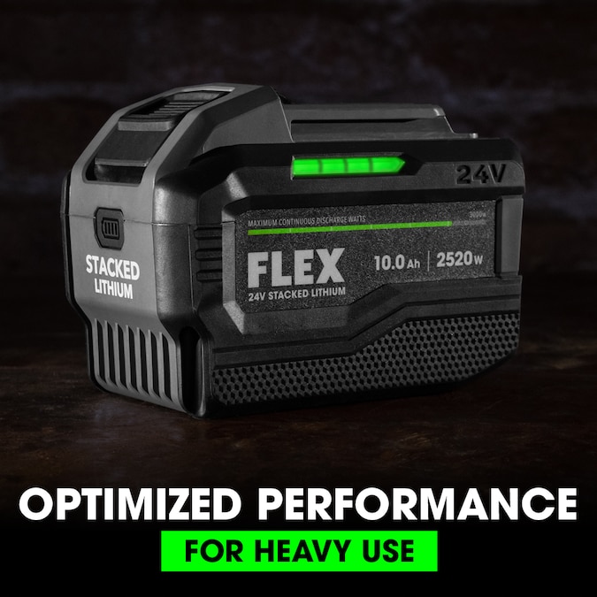 - THE FLEX STACKED LITHIUM ADVANTAGE – 200% more power with 24V Stacked Lithium, 300% longer battery life with THERMA-TECH™+ heat management, 100% faster charging, 100% cross-compatible with all FLEX 24V tools and chargers
