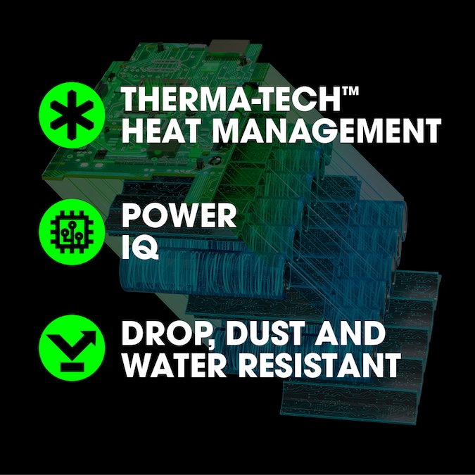 - THERMA-TECH™ HEAT MANAGEMENT – Innovative cooling system minimizes heat for 25% longer runtime